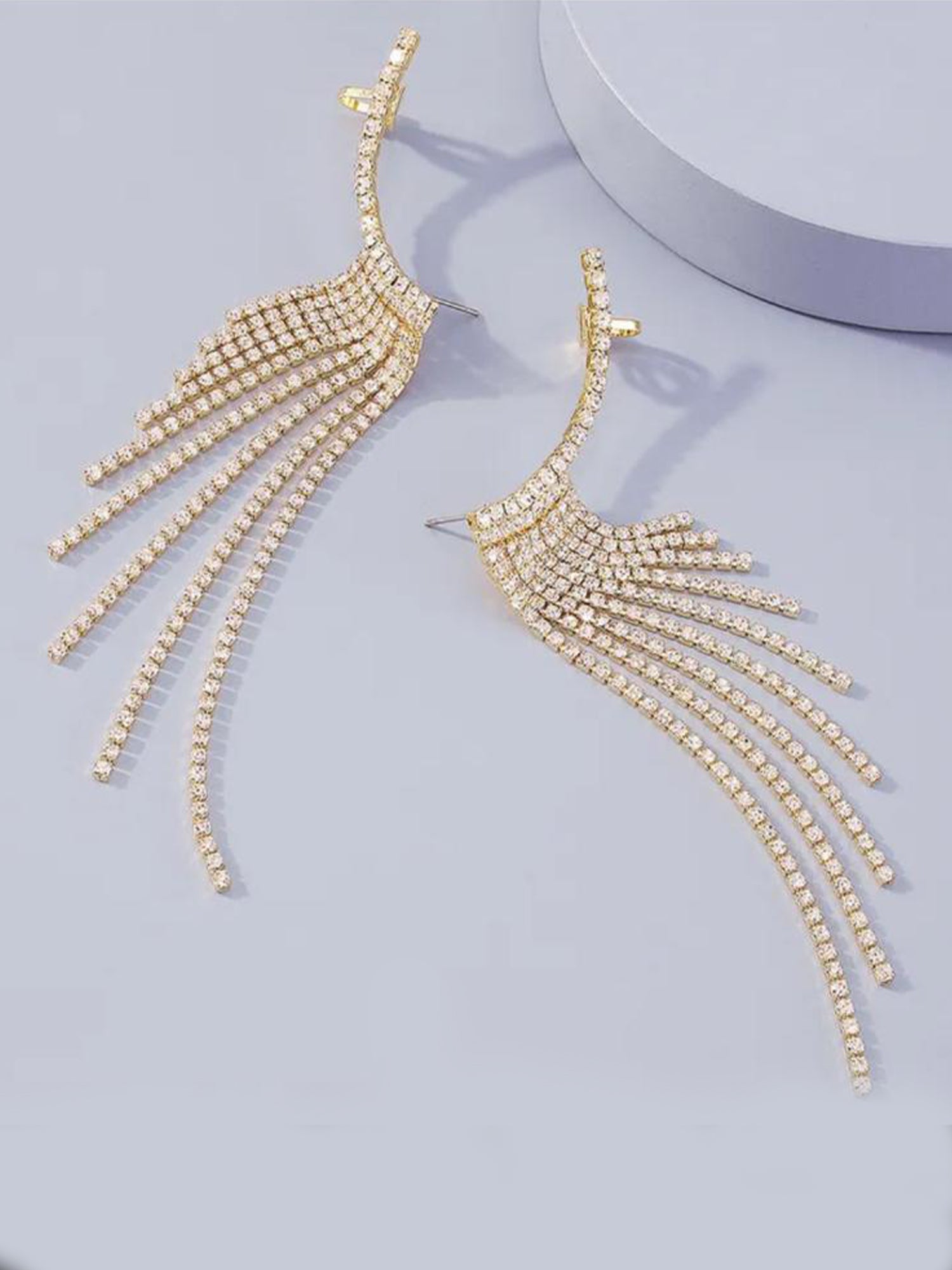 For a modern and sophisticated look, pair the chain earrings with a sleek, fitted turtleneck and tailored trousers. This creates a polished ensemble that lets the earrings shine. For a night out, wear them with a flowing maxi dress or an off-the-shoulder top, allowing the earrings to add a touch of glamour. Keep your hairstyle sleek, such as a low bun or straight hair, to showcase the earrings beautifully, and opt for minimal jewelry to let them take center stage.