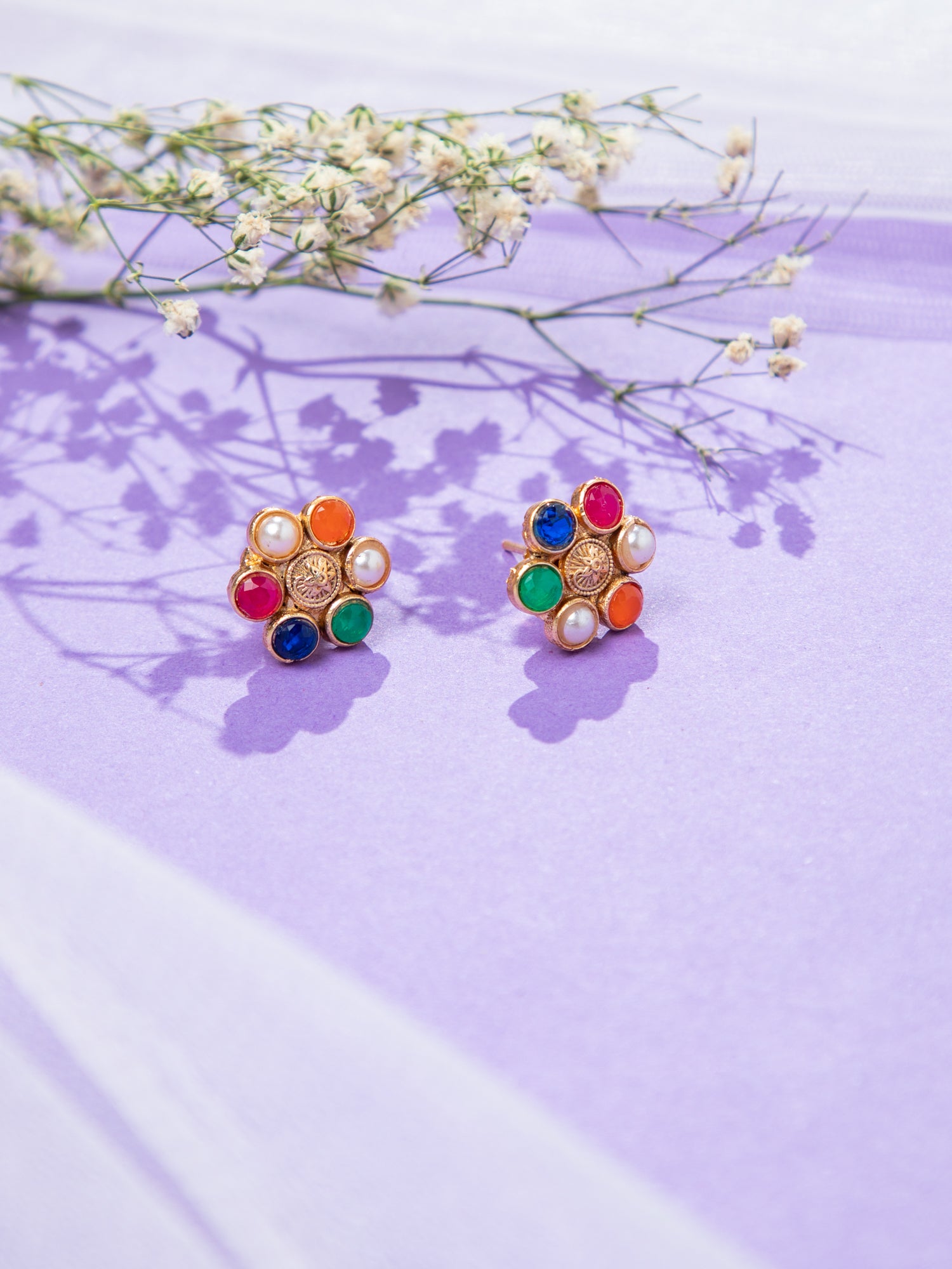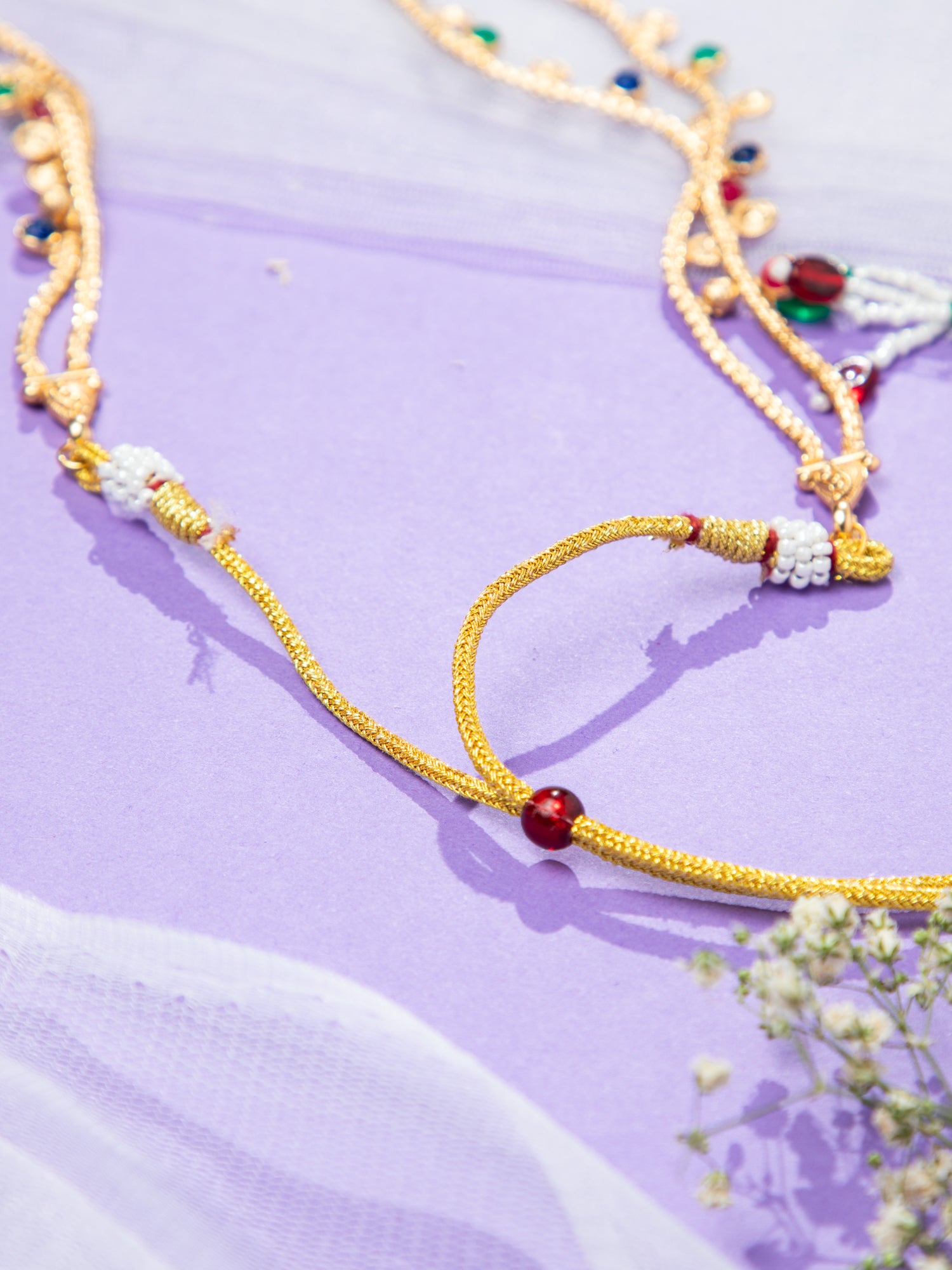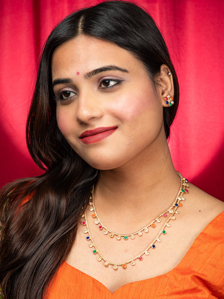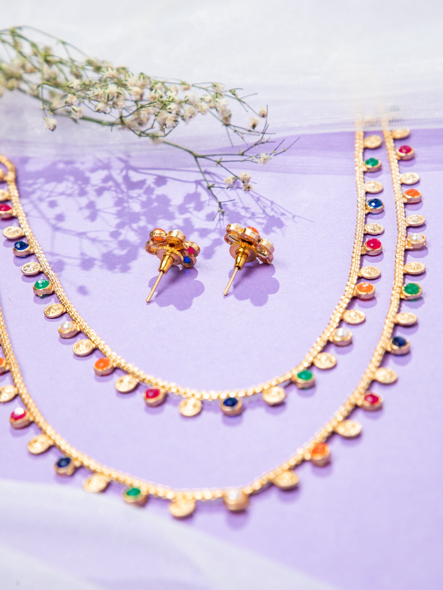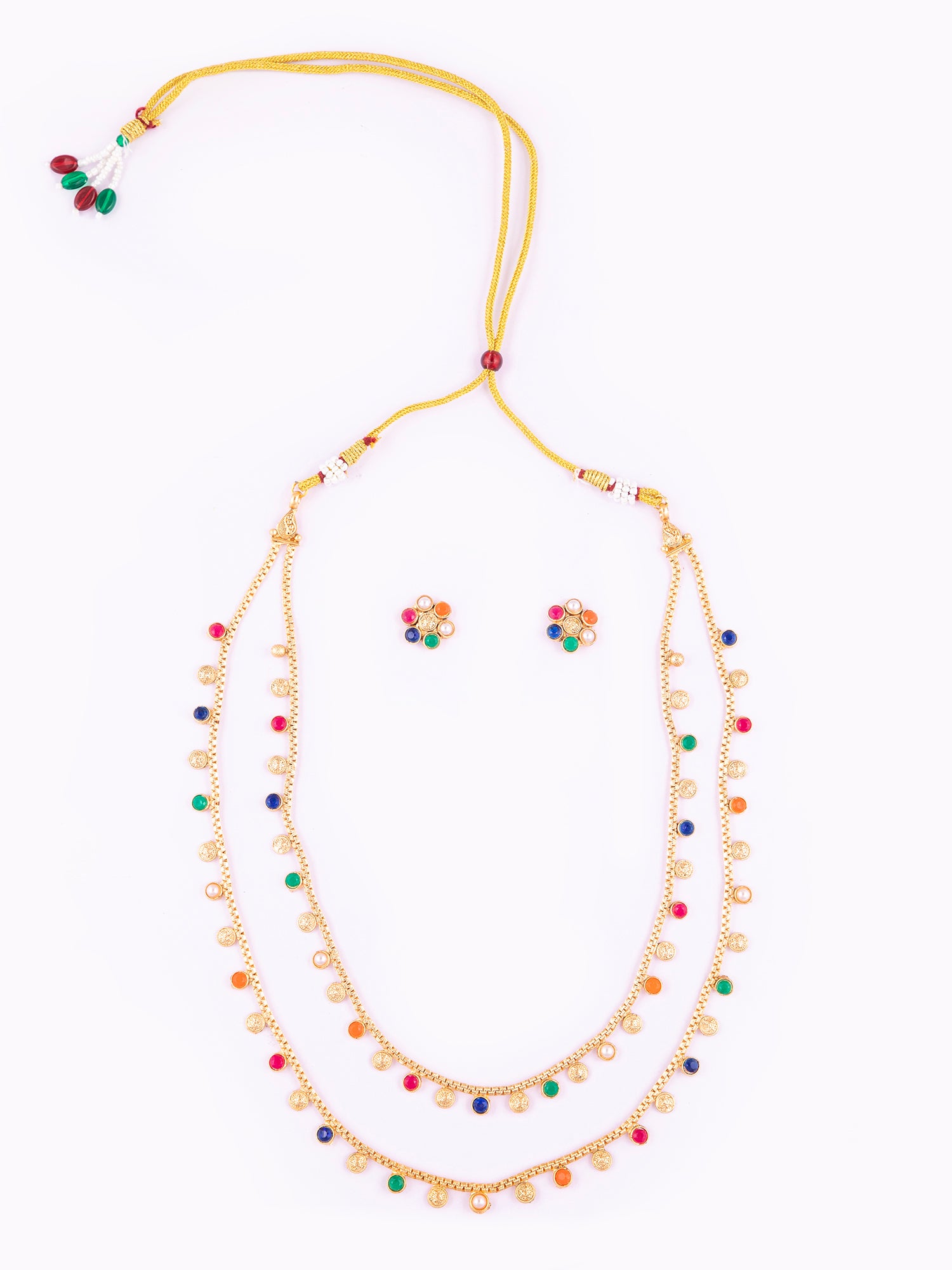 Matte Gold Plated Multicolor Two-Layered Necklace Set with Earrings