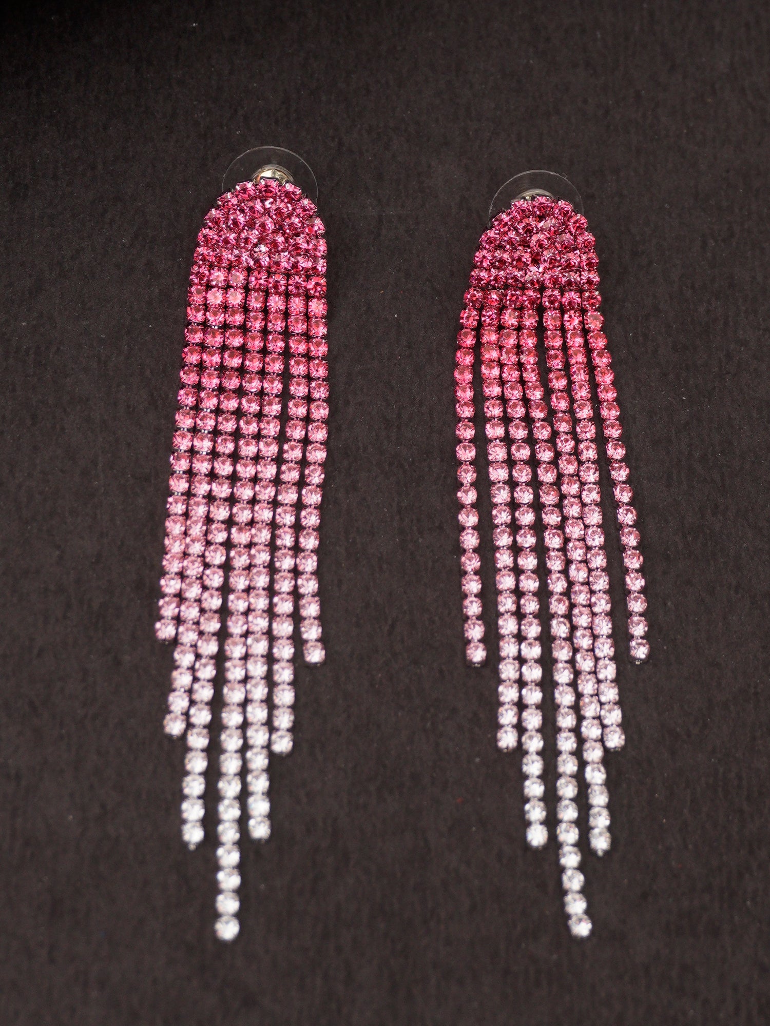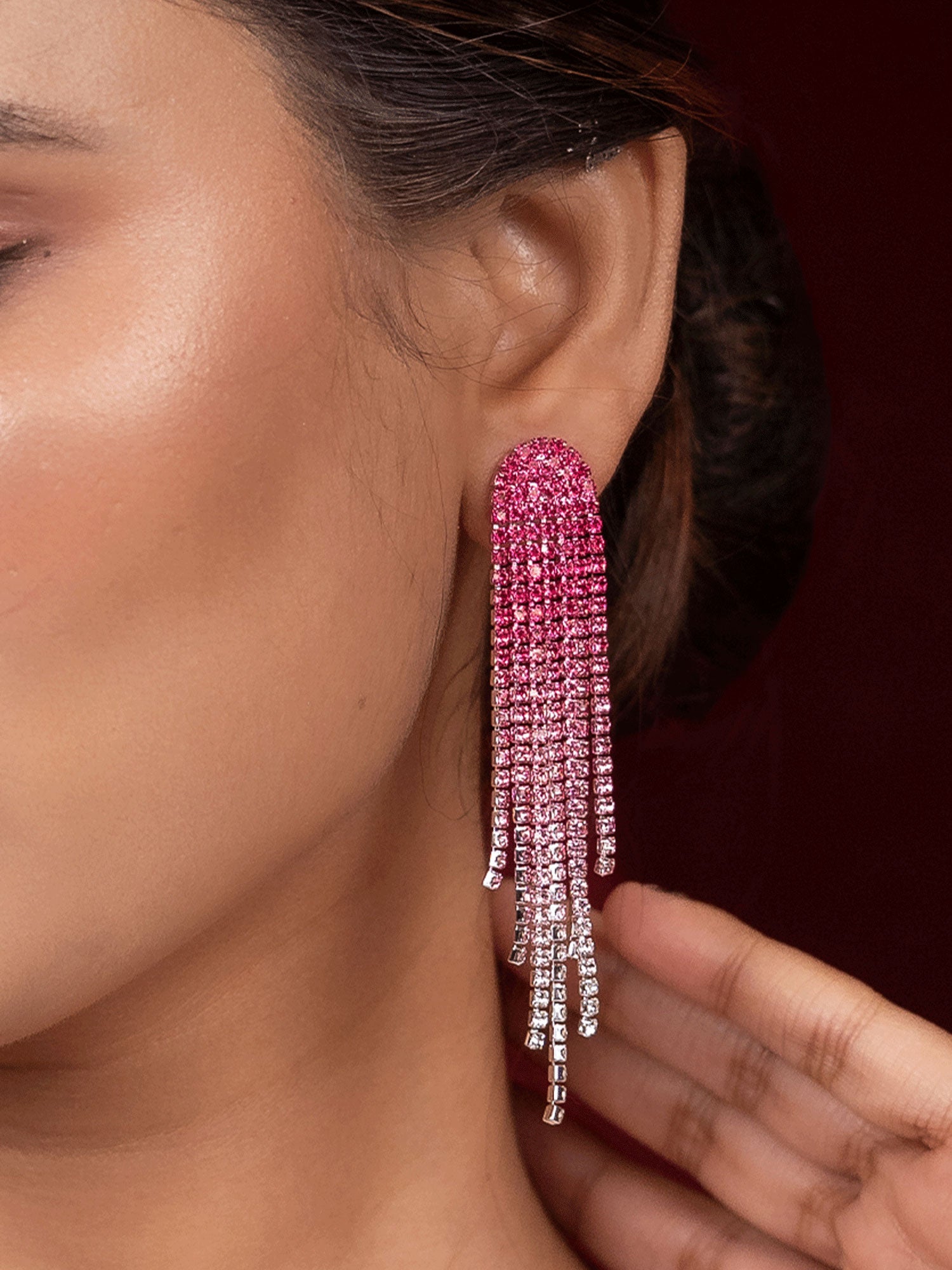 Fancy Pink and White CZ Crystal Dangler Earrings