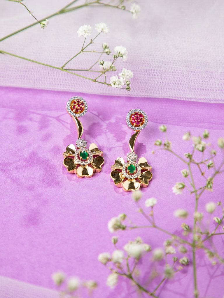 Designer Vibrant Multicolor Light Weighted Fancy EarringsVendor: NisckaDescription Brighten your collection with Niscka's stunning multicolor earrings. Crafted with a luxurious gold-plated base and expertly rhodium plated for added shine and durability, these earrings combine vibrant colors with a modern design. The interplay of hues and the brilliant stones create a striking...