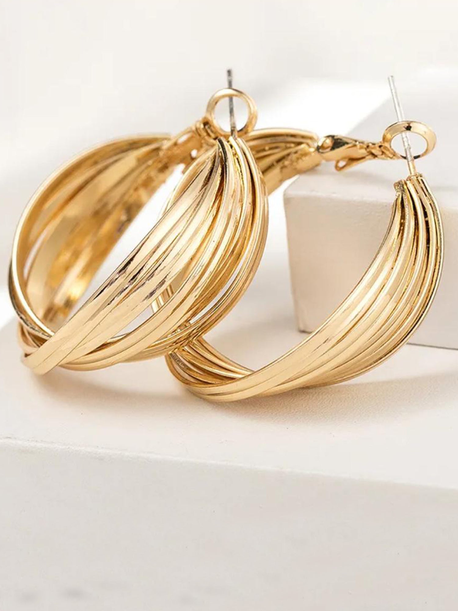 For a trendy look, style the gold-plated twisted hoop earrings with a fitted white tee and high-waisted jeans for a casual yet chic outfit. For a night out, pair them with an off-the-shoulder blouse and a sleek leather skirt to add a touch of glamour. Keep your hairstyle simple—like a messy bun or loose waves—to let the earrings stand out as the statement piece.