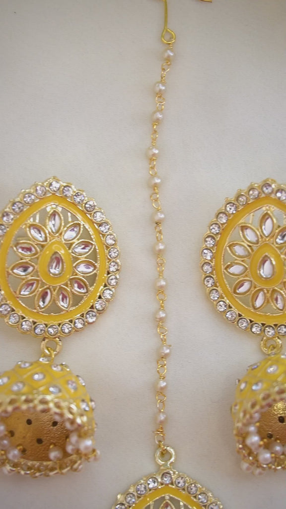 Mehndi Gold Plated Earrings with Lime Green and White KundanVendor: NisckaProduct Description Mesmerizing Mehndi gold-plated earrings featuring a large lime green and white stone, accented with small white CZ stones. Handcrafted by local artisans, this modern design is a must-have for parties, festivals, or functions, adding a stunning touch to any look. Style &...