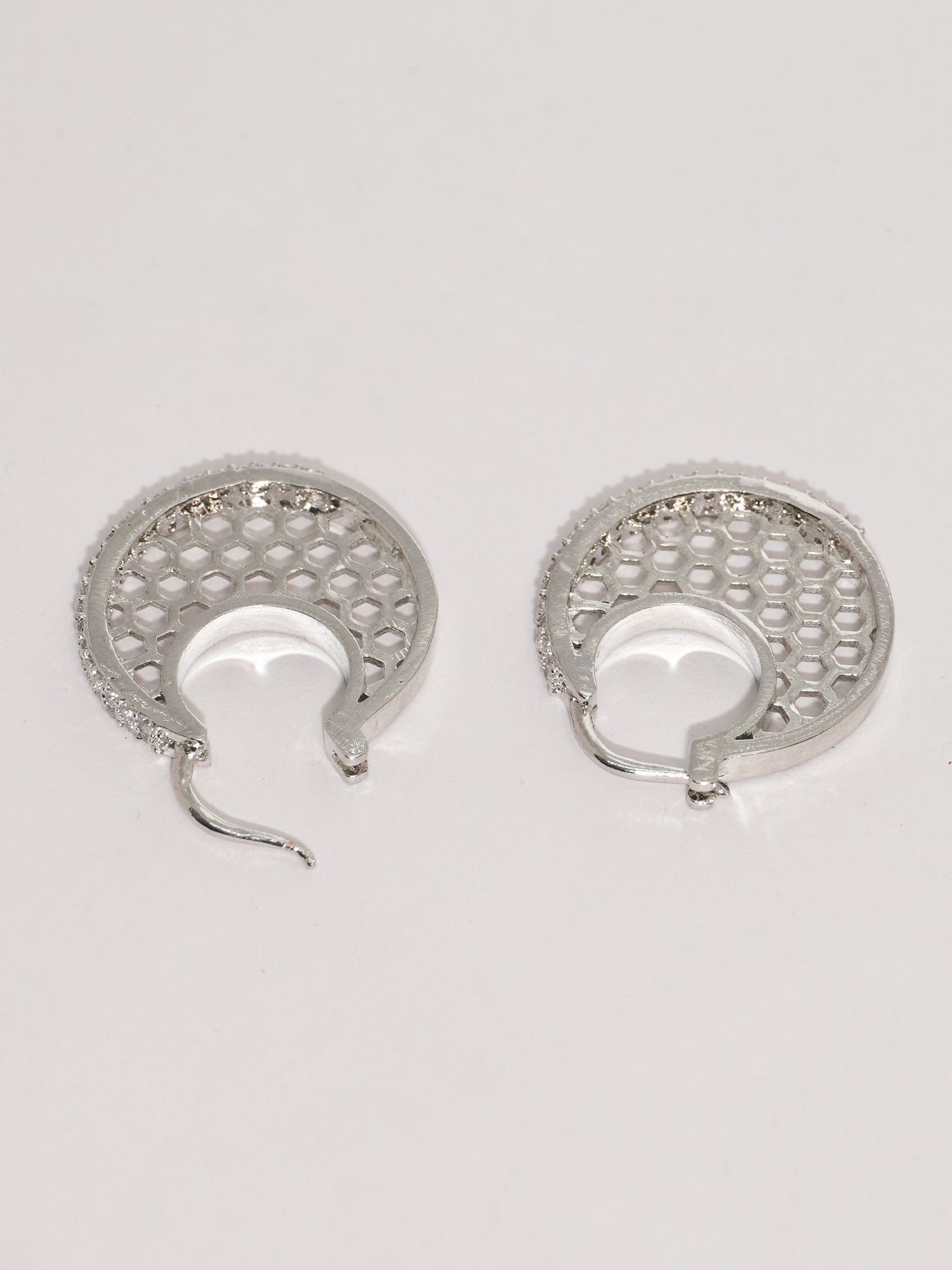 Step up your accessory game with Niscka's exquisite hoop earrings, expertly crafted with a stunning combination of zircon and sparkling American diamonds. These earrings feature a sleek silver design, enhanced by a luxurious rhodium plating that ensures lasting brilliance and durability. The shimmering zircon stones catch the light beautifully, adding a touch of glamour to your look. Perfect for both day and night, these hoops can elevate any outfit, whether you're dressing up for a special occasion or adding flair to your everyday style.