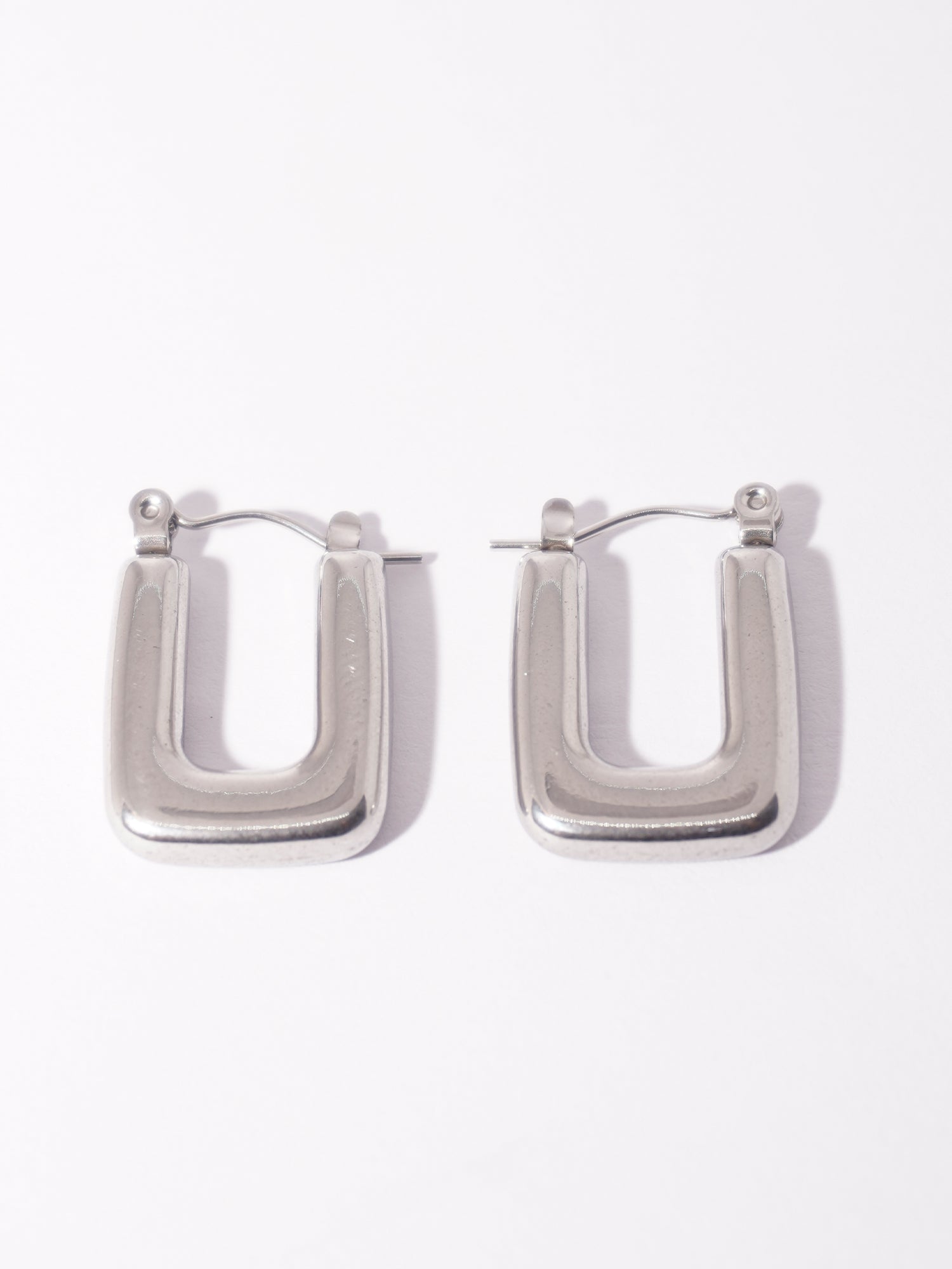 Discover the modern elegance of Niscka's U-shaped hoop earrings, expertly crafted with a sleek silver-plated finish. These stylish hoops feature a unique U shape that adds a contemporary twist to a classic design, making them a versatile accessory for any outfit. Lightweight and comfortable, they are perfect for everyday wear or for elevating your evening look. Whether you're dressing up for a night out or keeping it casual, these silver-plated U-shaped hoops are sure to become a staple in your jewelry collection.