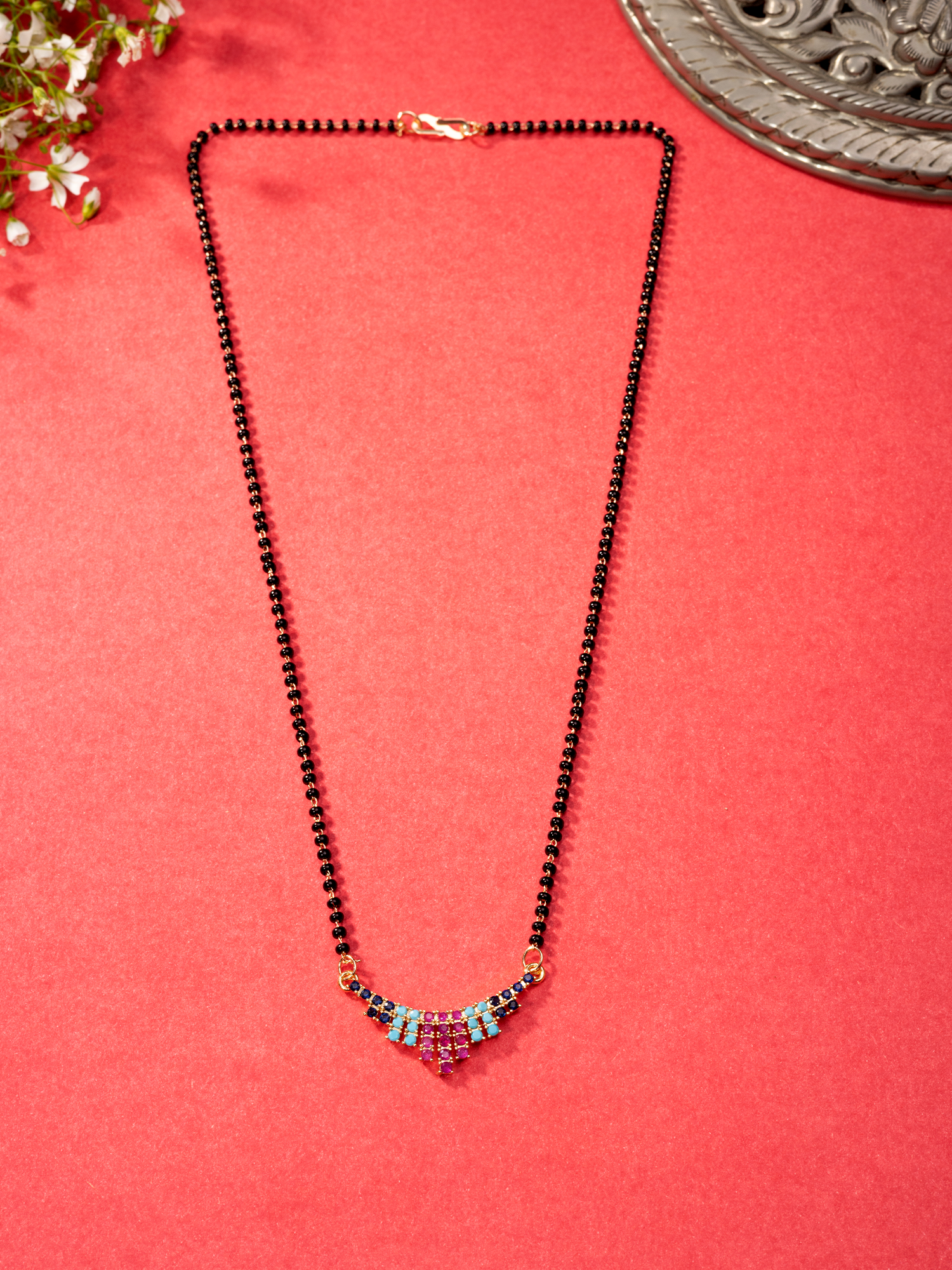 Add a pop of color to your casual outfit by pairing this stunning mangalsutra with a white blouse and jeans, or elevate your party attire by wearing it with a chic black dress to highlight its vibrant stones.