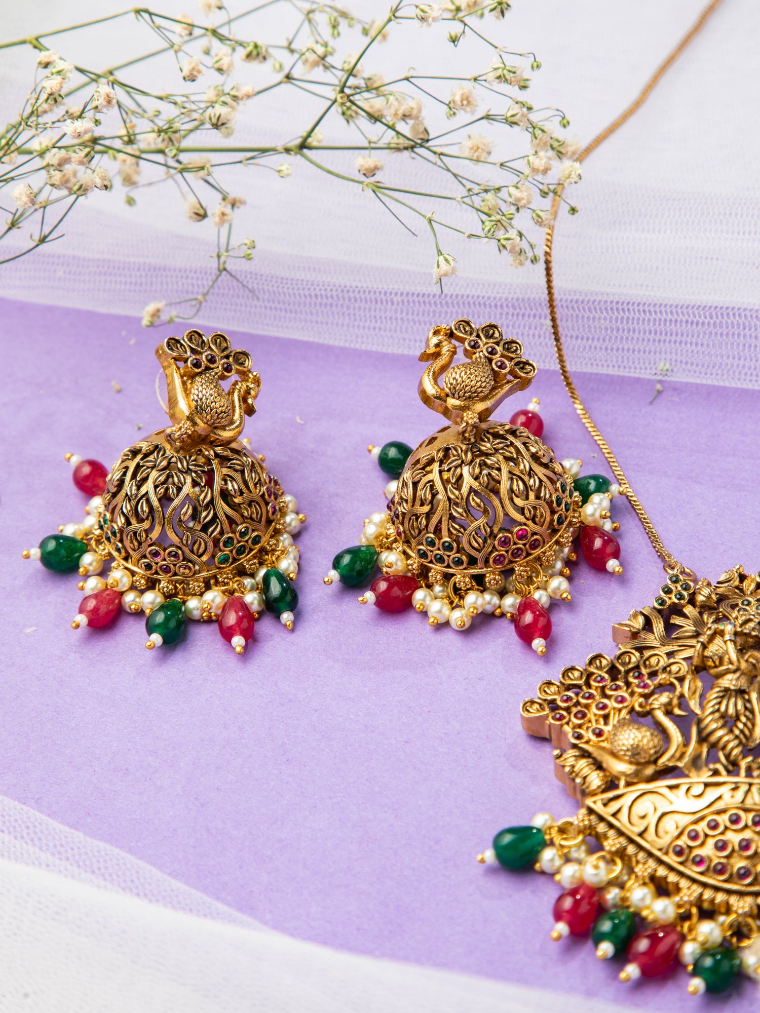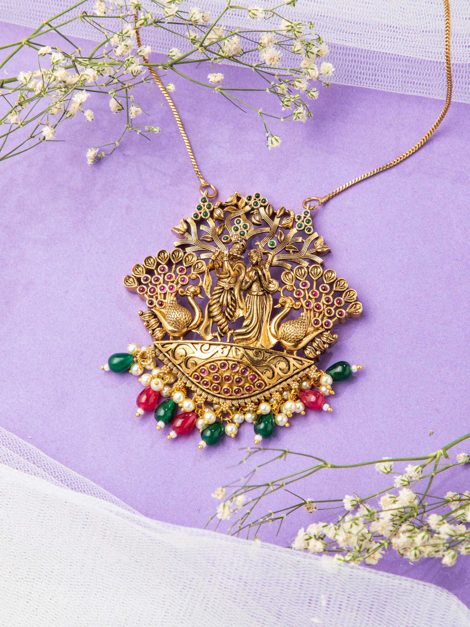 Radha Krishna Peacock Design 24K Gold Plated Necklace Set with Earrings