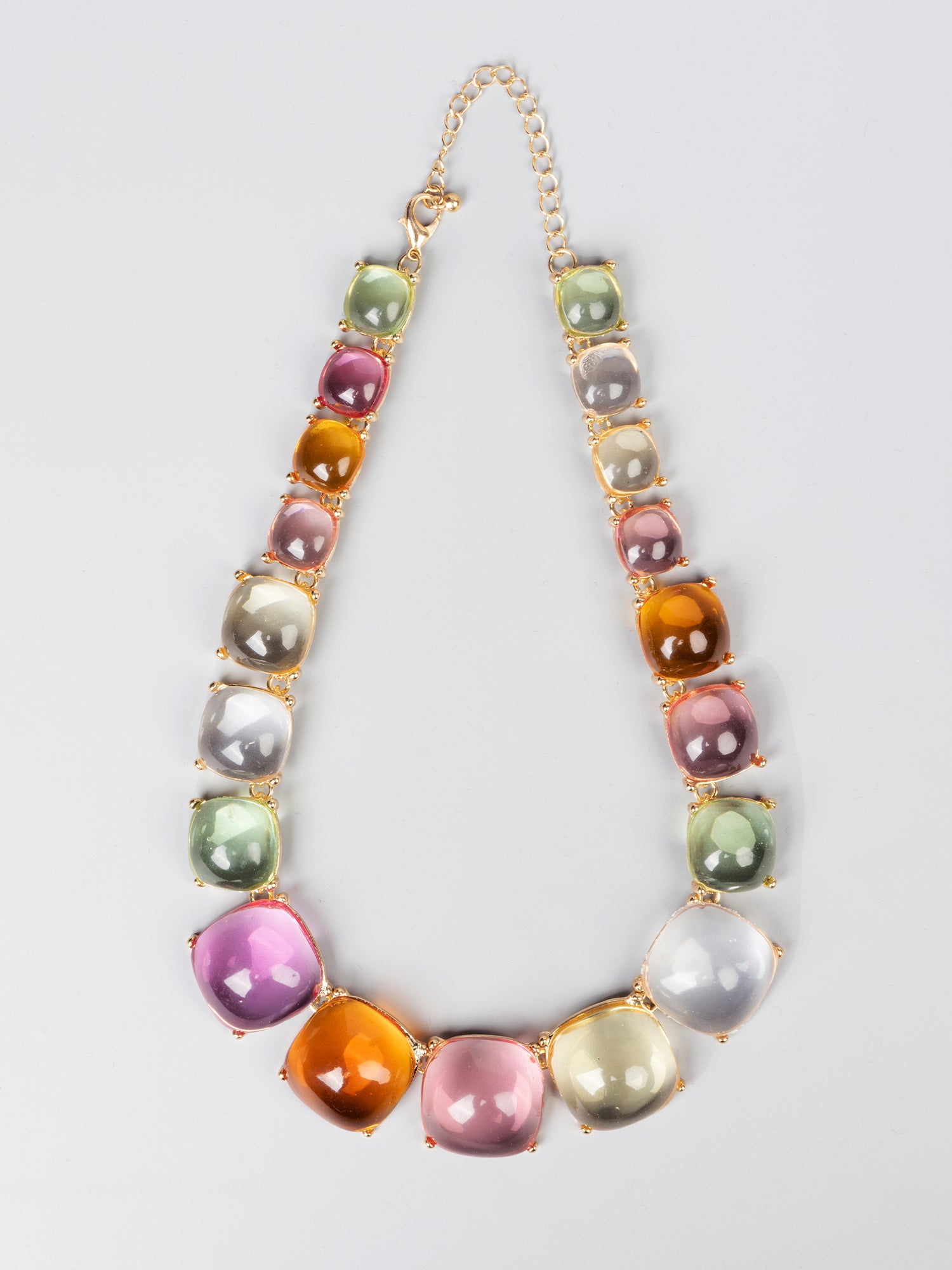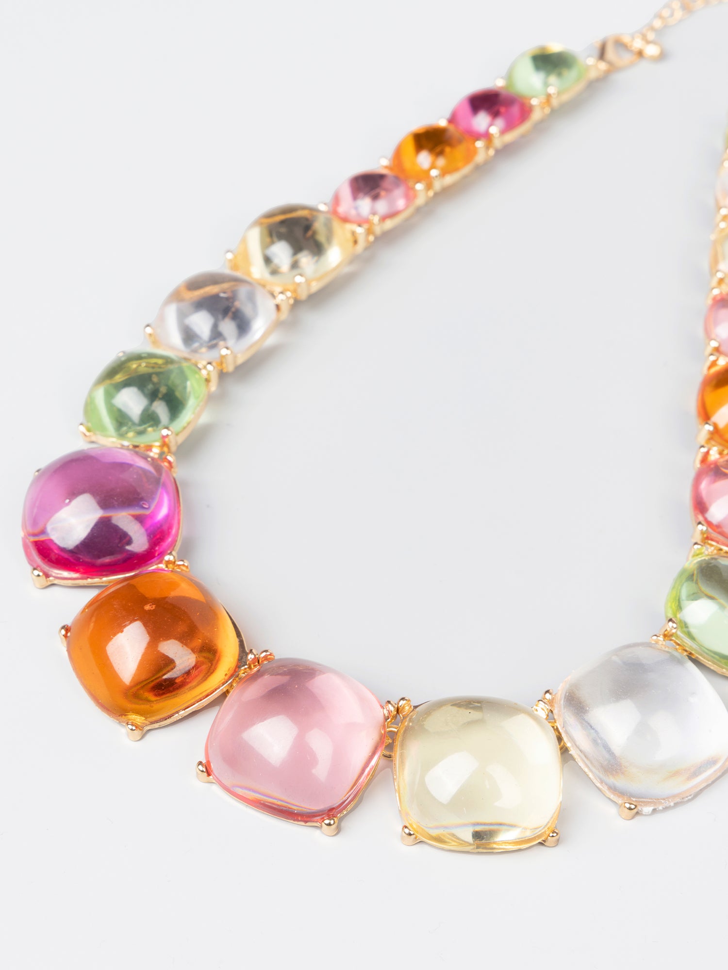 Gold-plated Multi-Colour Translucent Stone Necklace