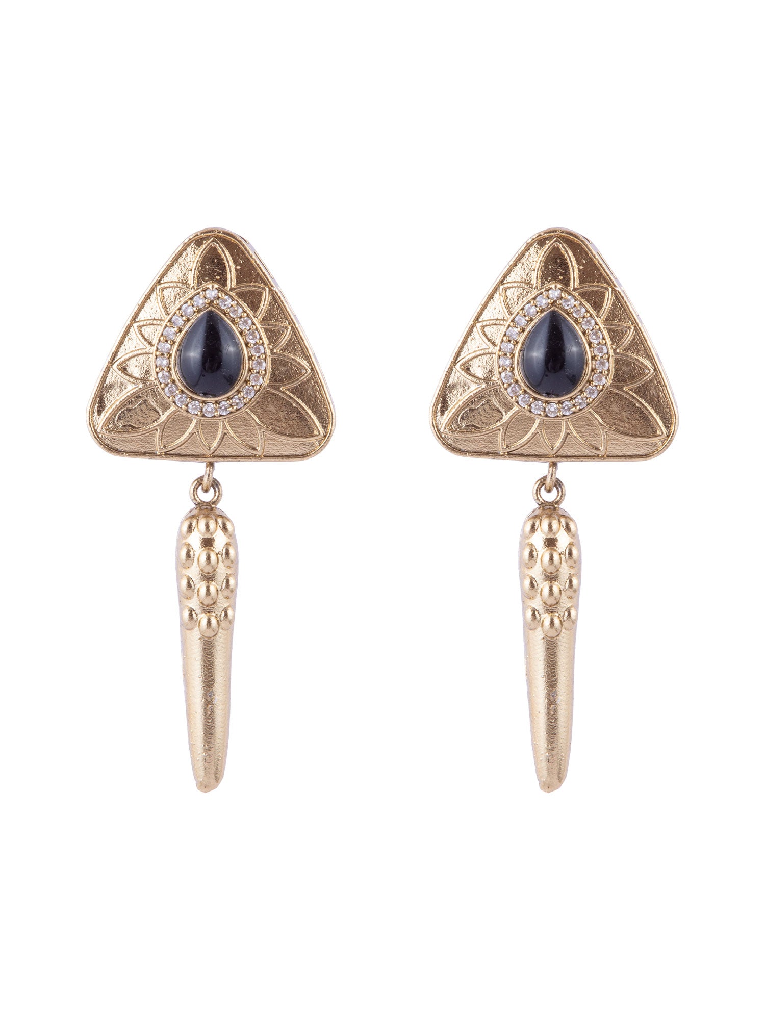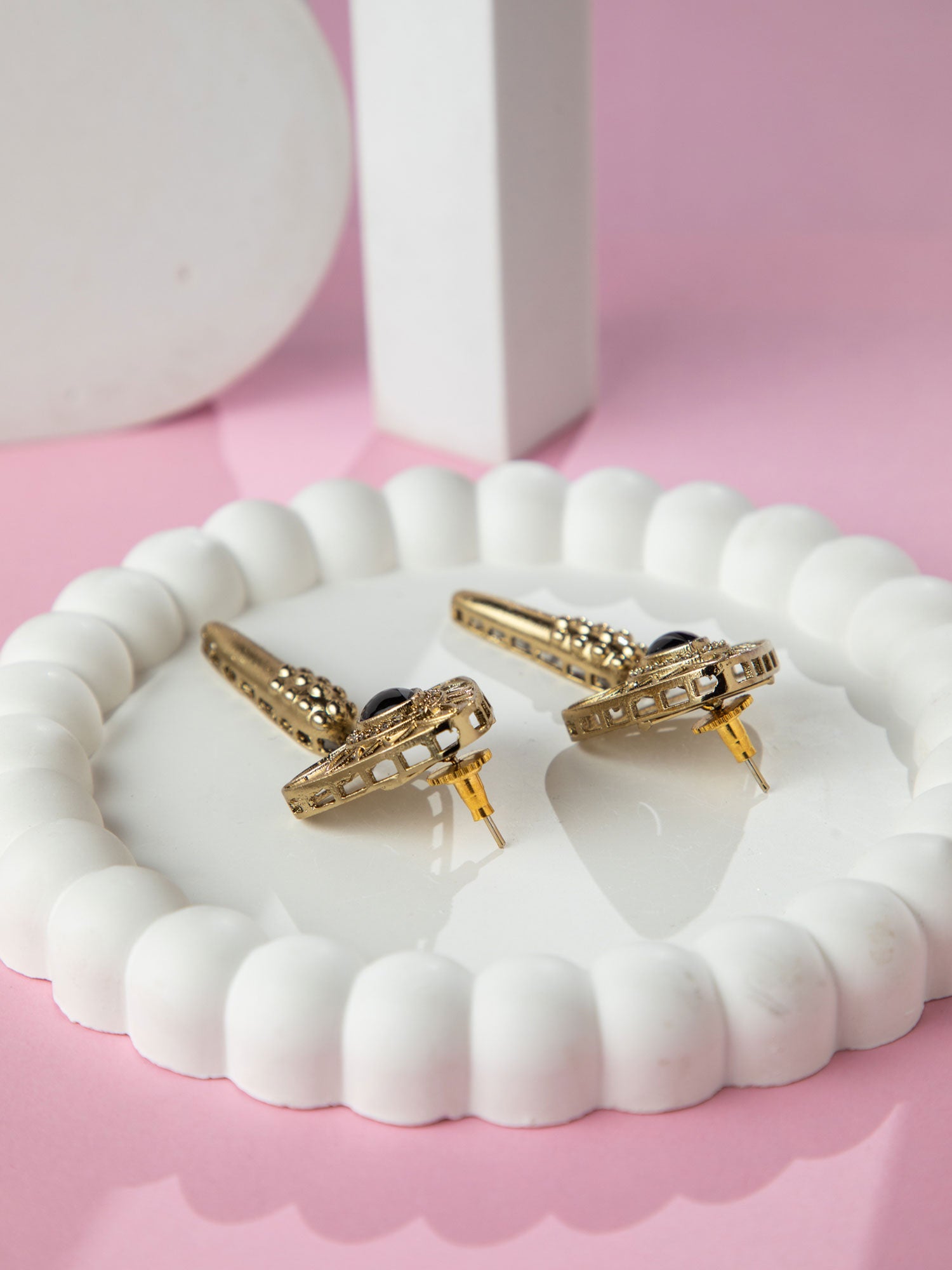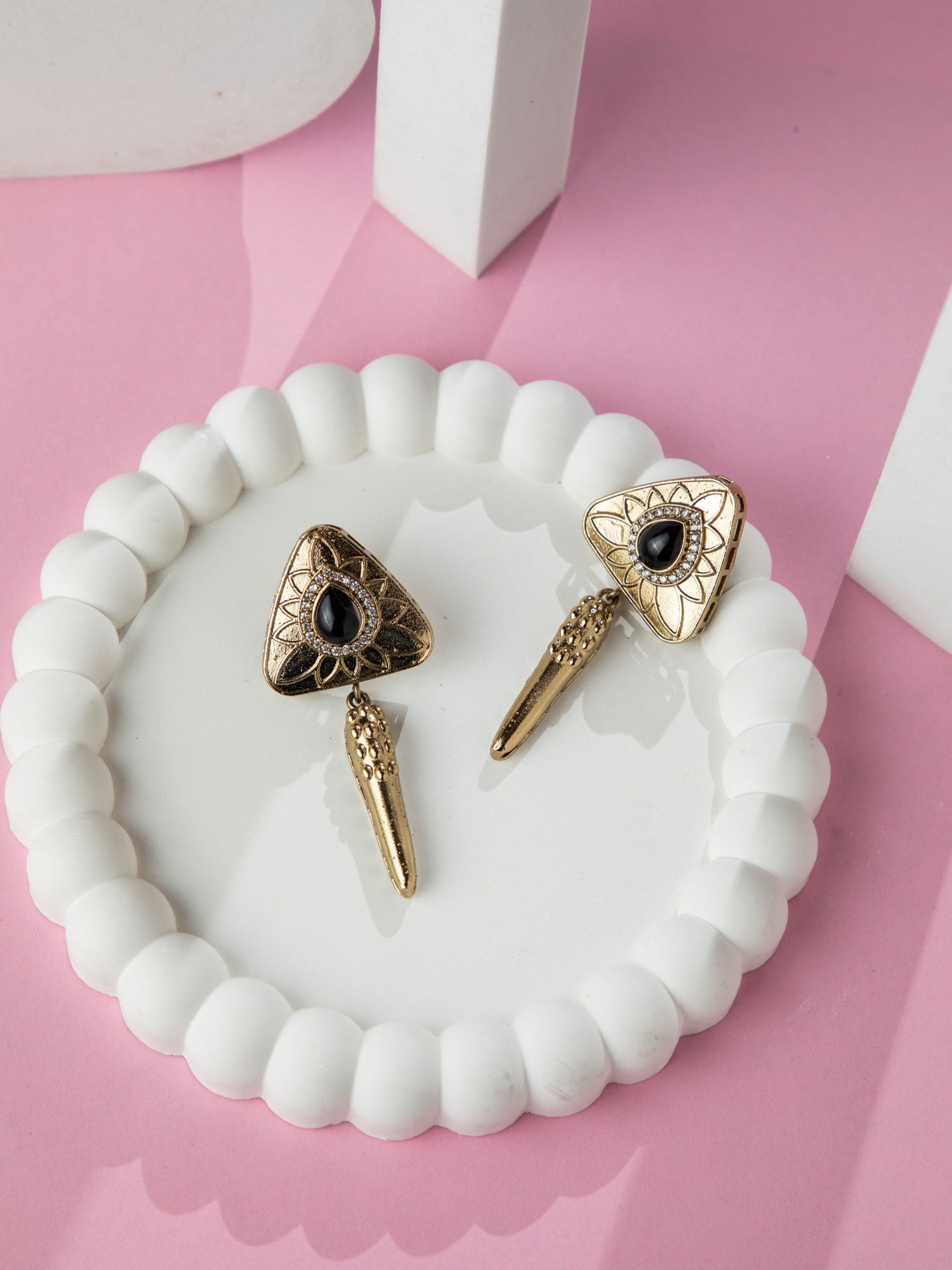 18K Gold Plated Black Water Drop Dangler Earrings with White CZ Stones