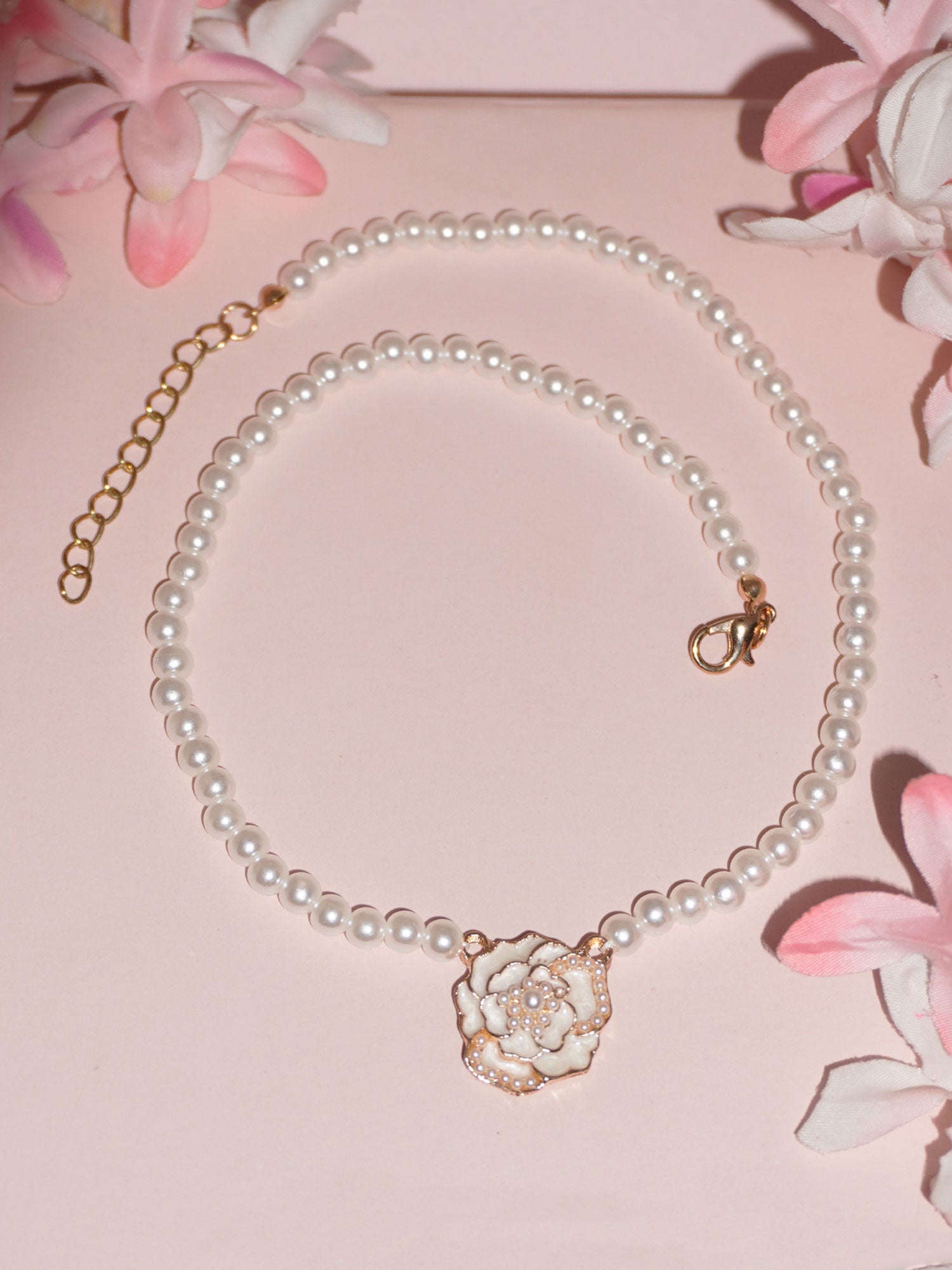 Elevate your style with this exquisite Gold-Plated Pearl Flower Necklace. A perfect blend of elegance and nature-inspired beauty, this necklace features a stunning flower design adorned with a lustrous pearl at its center. The delicate gold-plated chain adds a touch of sophistication, making it an ideal accessory for both everyday wear and special occasions. The timeless combination of gold and pearl creates a look that is both classic and modern, while the floral motif adds a subtle hint of femininity. Whether you're dressing up for a night out or adding a touch of grace to your daily ensemble, this necklace is sure to turn heads and capture hearts.