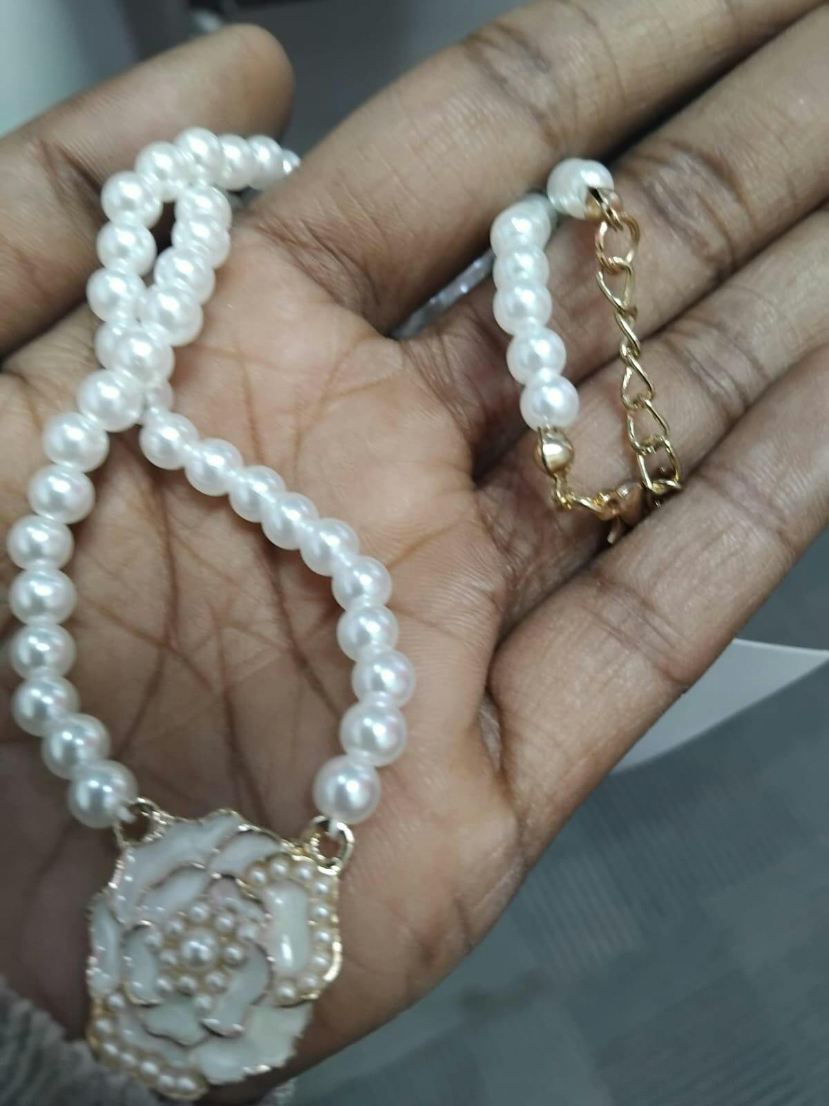 Pair this Gold-Plated Pearl Flower Necklace with a simple, elegant dress for a refined look, or wear it with a blouse and tailored pants for a chic, day-to-night transition. The necklace also complements soft pastel hues and neutral tones, adding a touch of sophistication to any outfit. For an extra flair, layer it with other delicate gold pieces for a trendy stacked look.