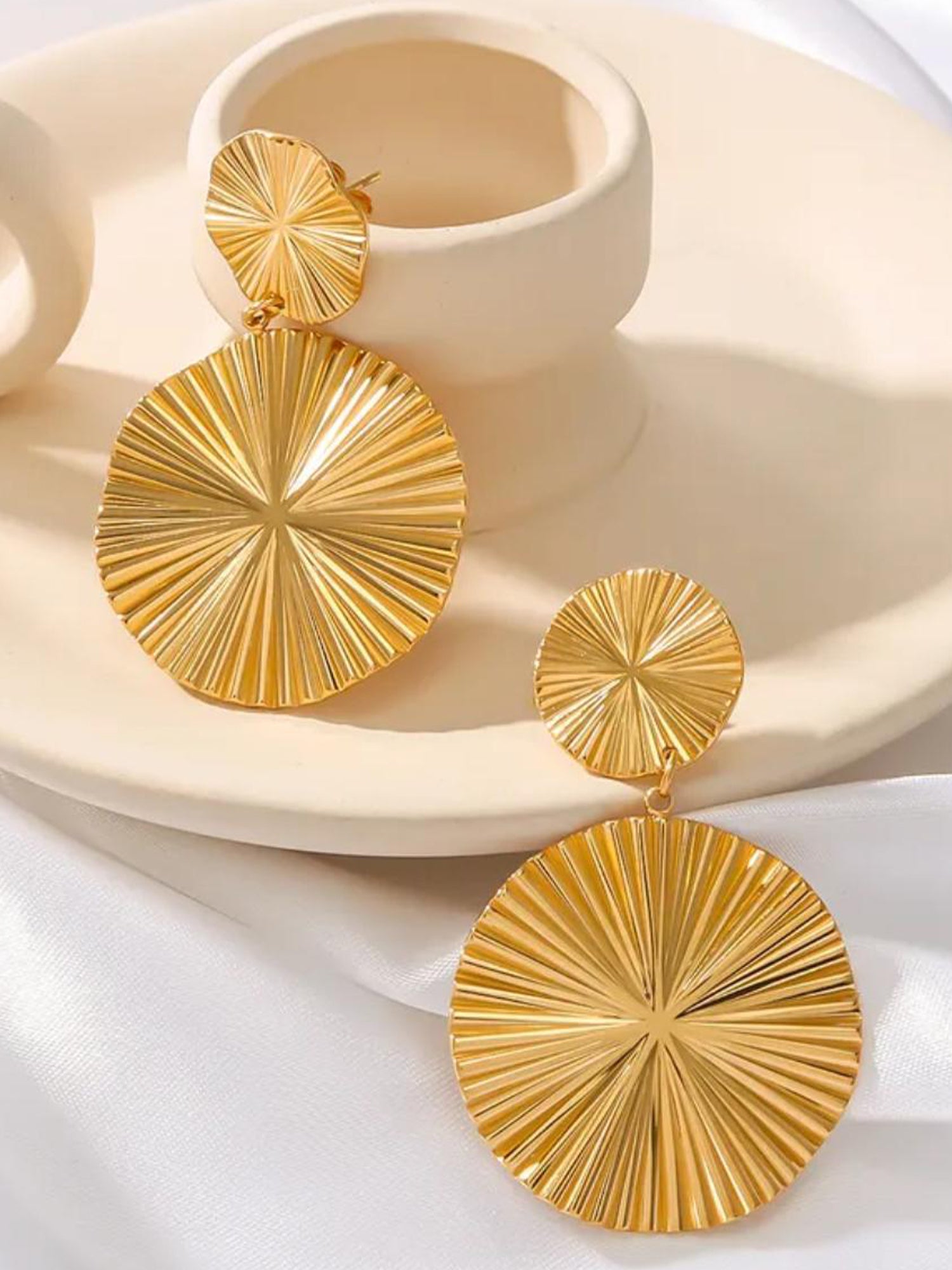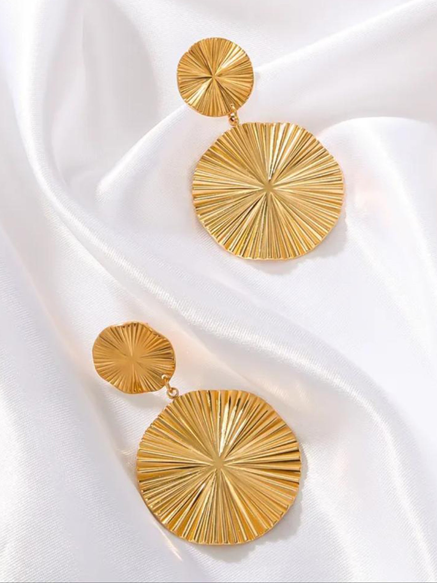 For a chic and polished look, pair the 24k gold-plated circle earrings with a tailored blazer and a fitted blouse, along with high-waisted trousers. This creates a sophisticated ensemble perfect for work or a night out. For a more casual vibe, wear them with a simple white tee and distressed jeans, allowing the earrings to elevate your everyday style. Keep your hair in loose waves or a sleek ponytail to draw attention to the earrings, and opt for minimal additional jewelry to let them shine.