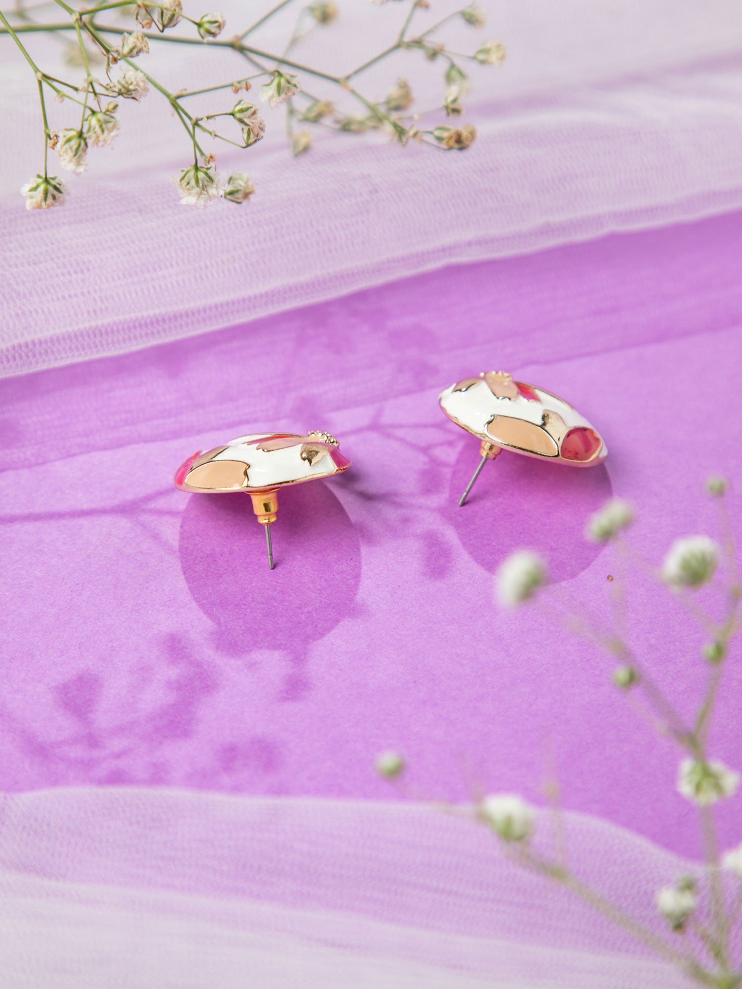 24K gold-plated round stud earrings featuring a beautiful floral design on top. Handcrafted by local artisans, this mesmerizing and modern design is a must-have for daily, party, festive, or function wear—adding timeless elegance to any look.