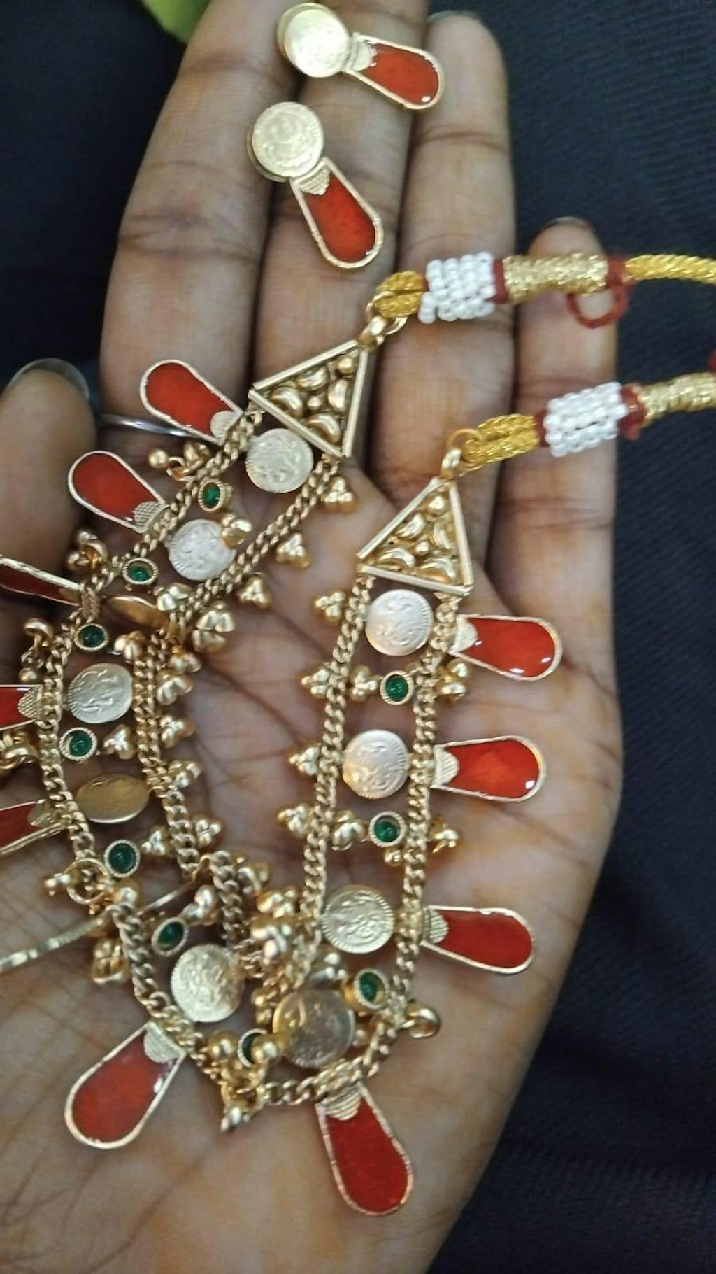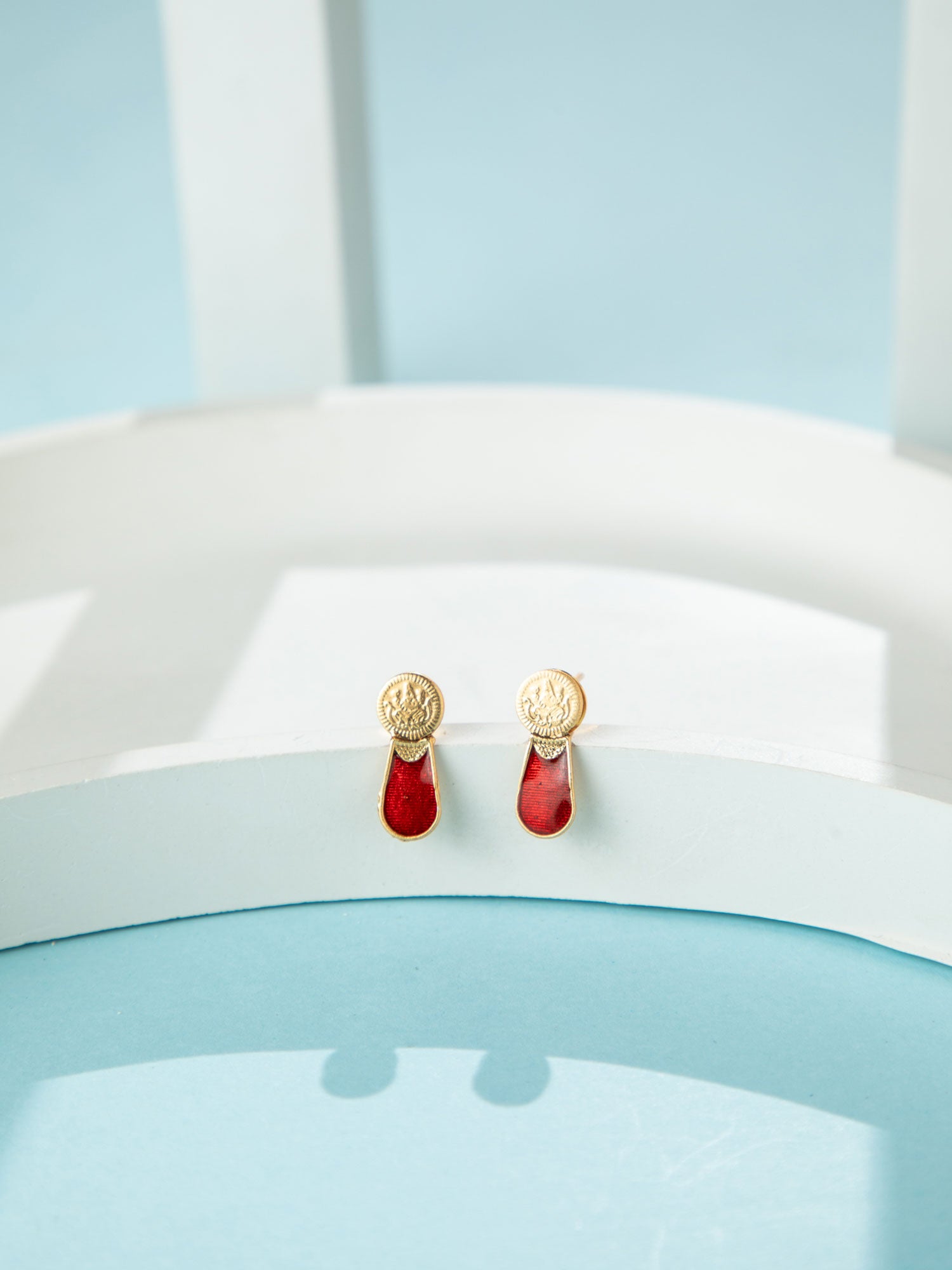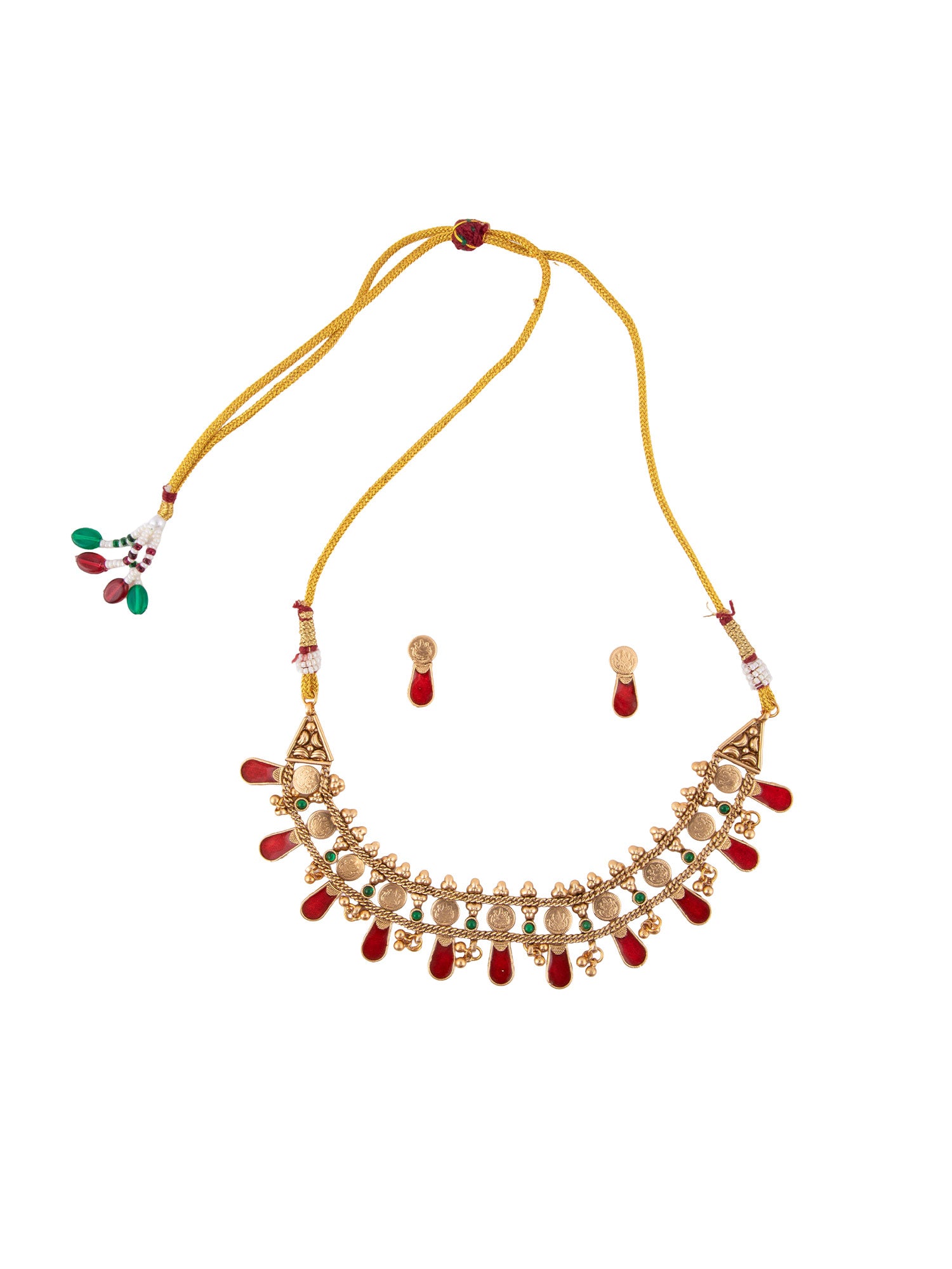 24K Gold Plated Lakshmi Coin Meenakari Necklace and Stud Earrings Set