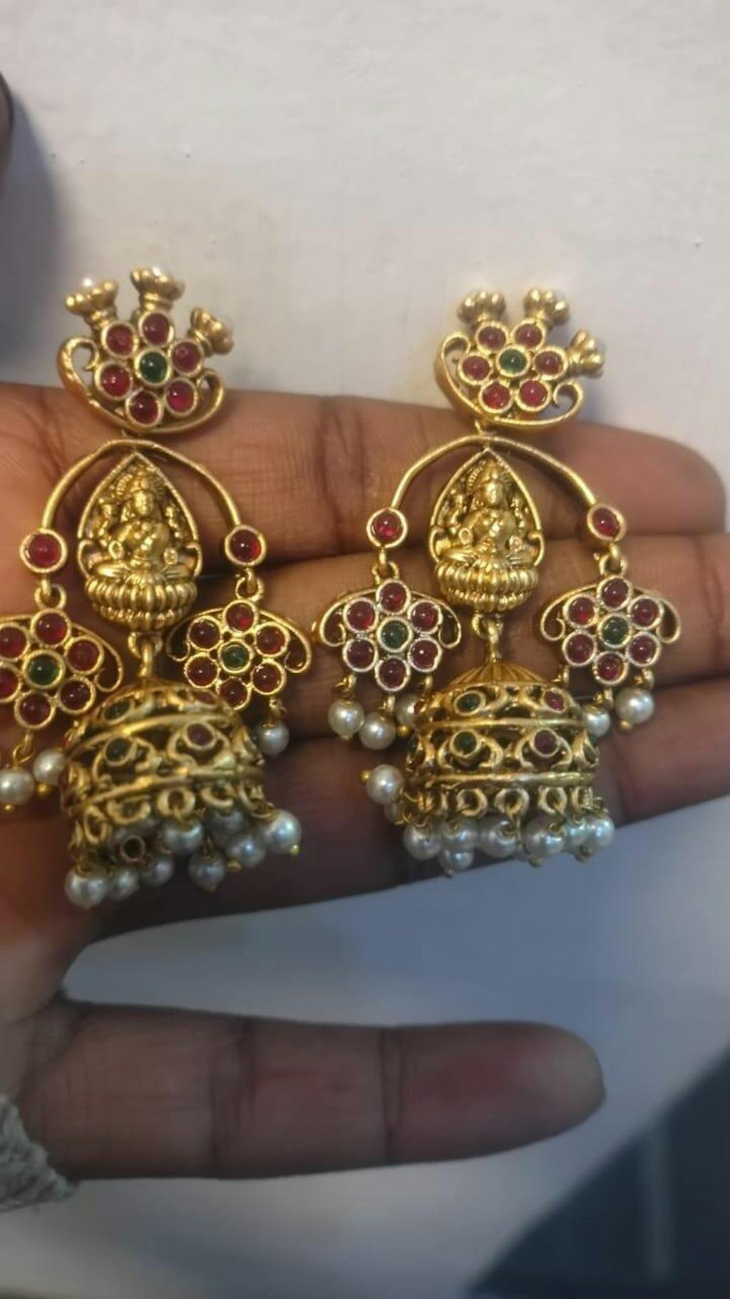 To make the most of the Niscka 24K Gold-Plated Laxmi Jhumka Earrings, pair them with a traditional saree or lehenga in rich, contrasting colors to let the gold and pearls stand out. and style your hair in a classic updo or soft waves for a graceful finish. These earrings will add a touch of timeless elegance to any festive or special occasion ensemble.