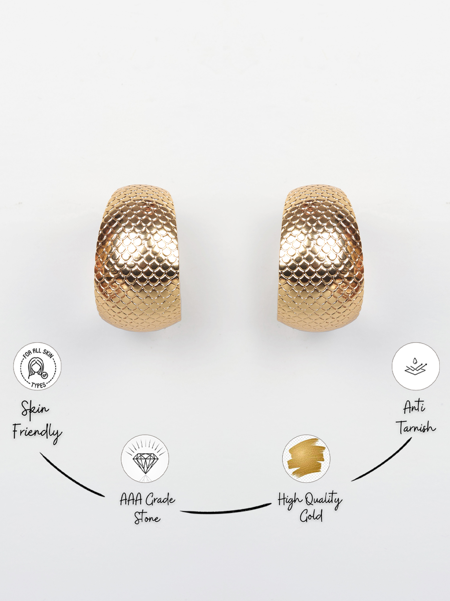 Introducing our exquisite 24K Gold-Plated Round Earrings, boasting a beautiful crescent design that exudes timeless elegance. These mesmerizing earrings are a must-wear accessory for any occasion, skillfully crafted with the latest design trends in mind. Handmade by local artisans, they feature anti-allergic and anti-tarnish properties, ensuring both style and comfort. Elevate your ensemble with these modern treasures, perfect for functions, festivals, and parties, adding a touch of sophistication and glamour to your look.