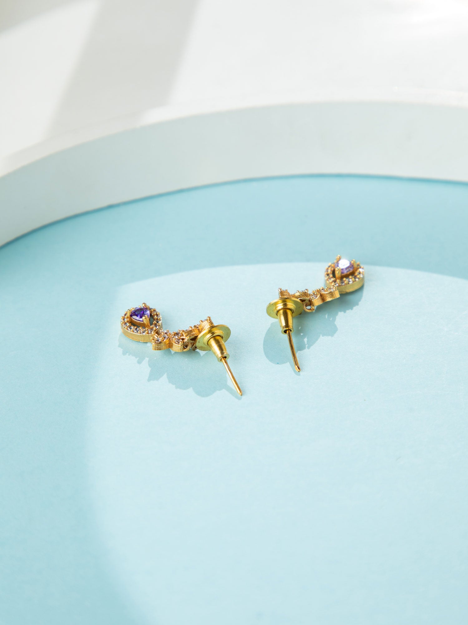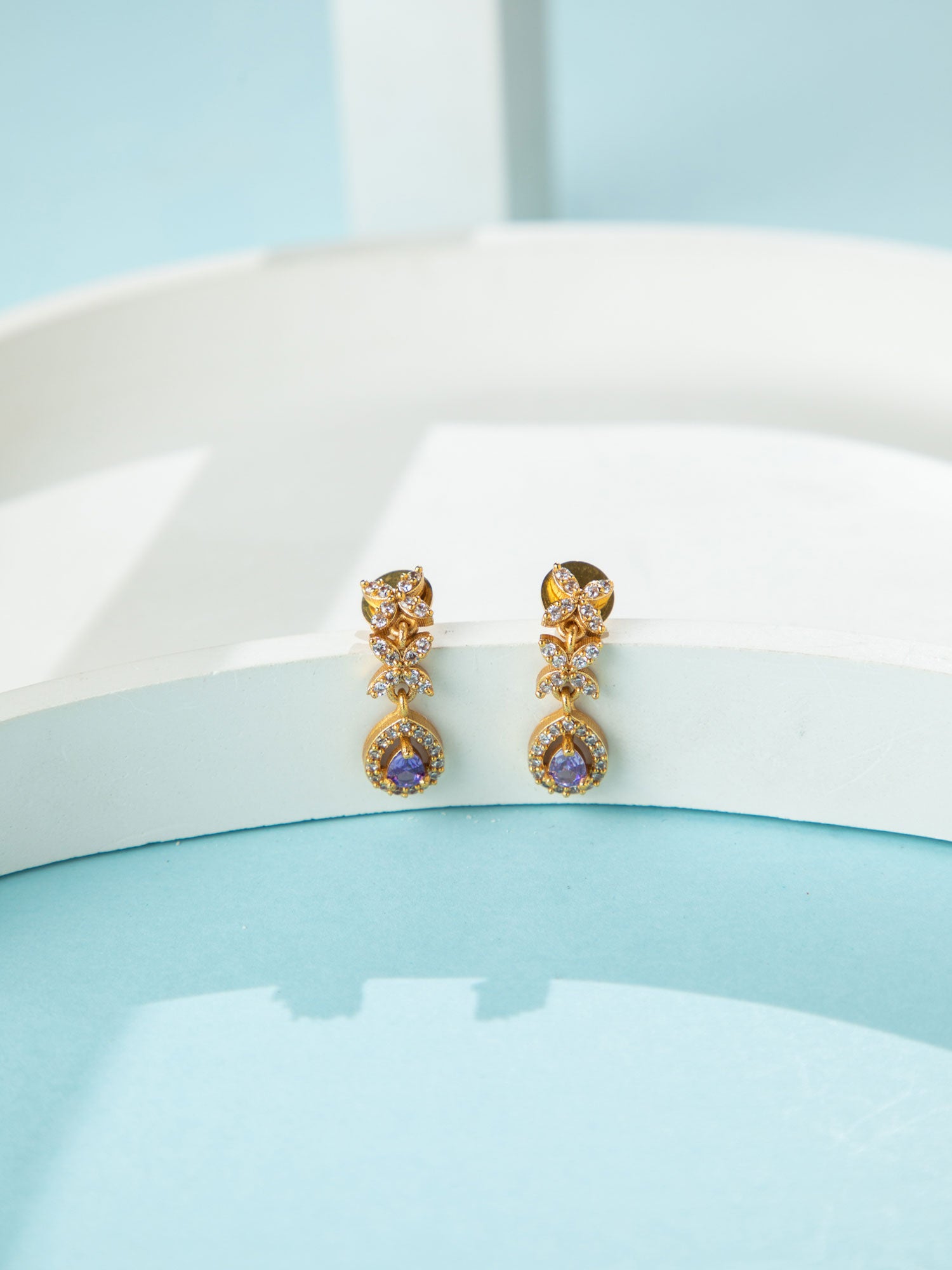 24K Gold Plated White and Purple American Diamond Necklace and Earrings Set