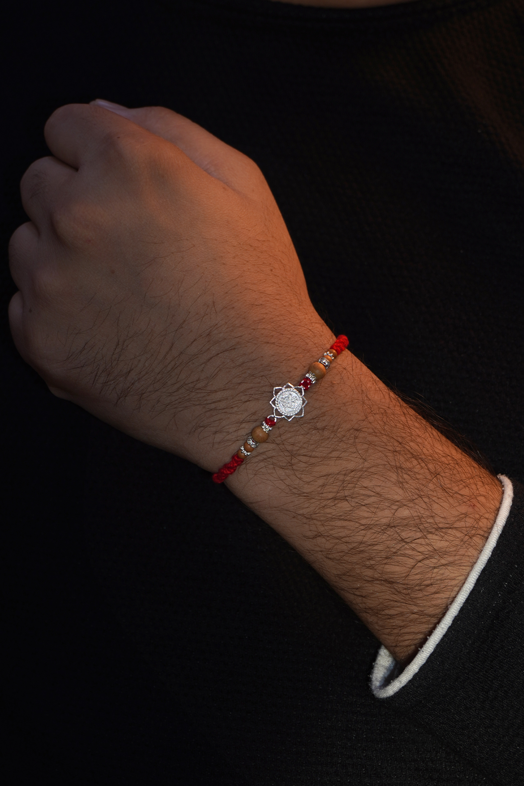 925 Sterling Silver Om & Ganesh Combo Rakhi with Beads ( Set of 2 )
