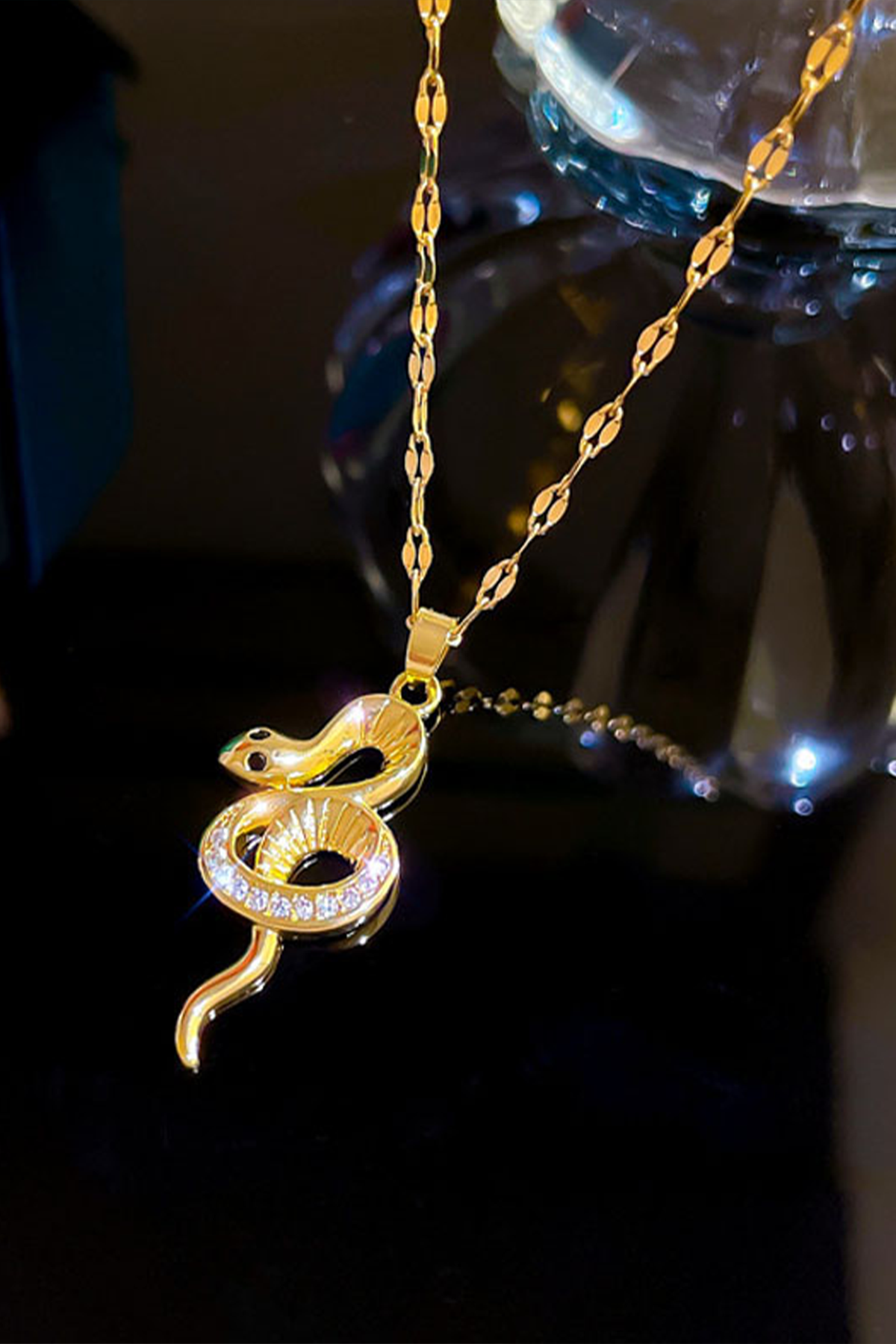 American Diamond Studded Gold Plated Snake Pendant Chain