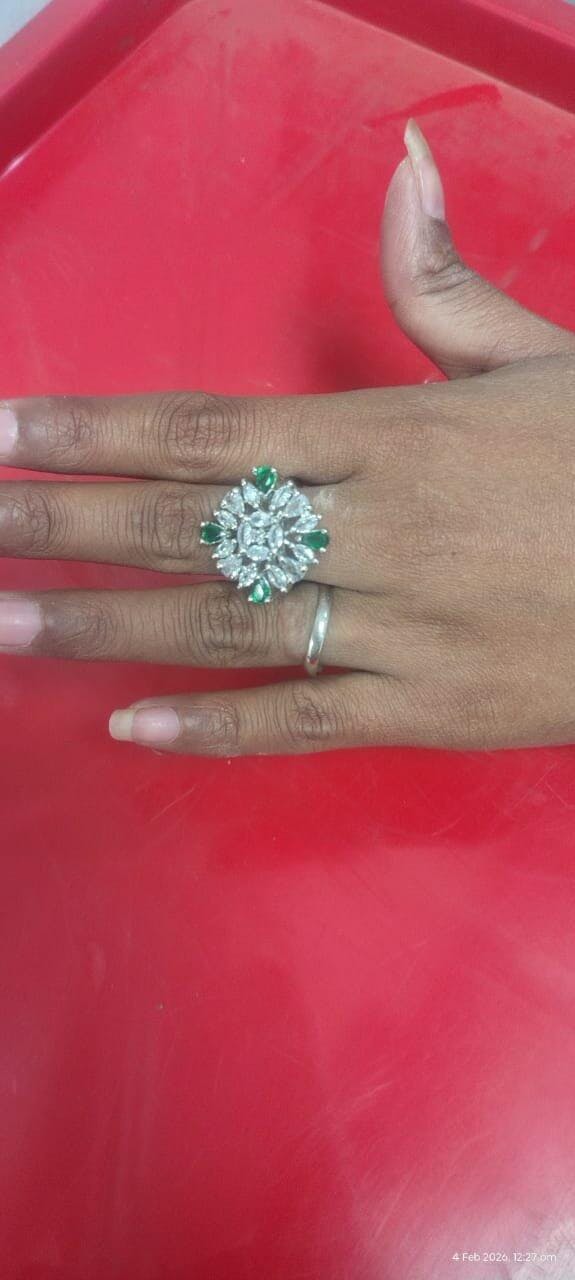 American Diamond Zirconia Stone Studded Ring (Green)  - Green Stone Ring