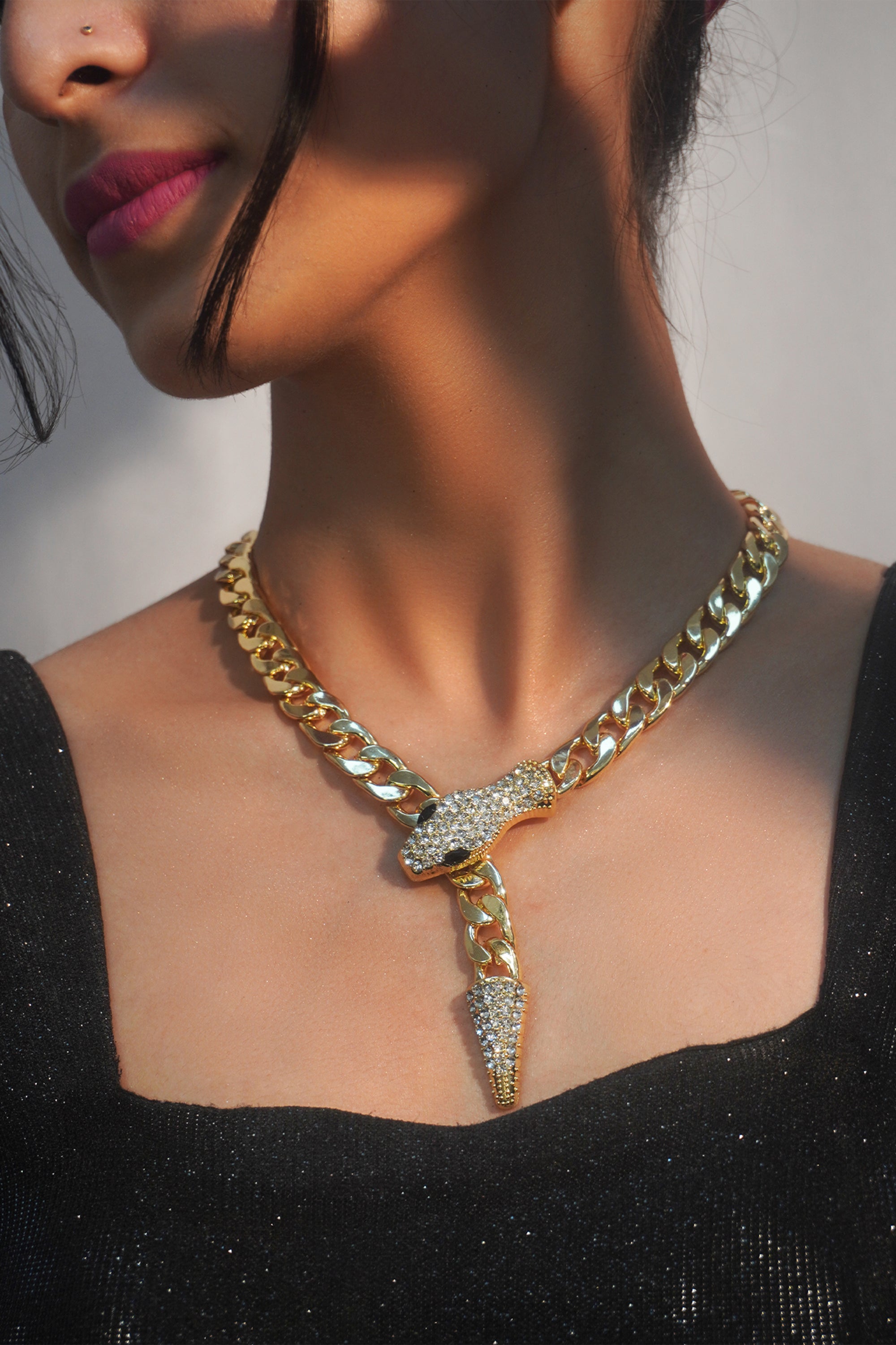 This snake necklace is perfect to wear to cocktail parties, office events, and award functions. The gold color makes it the best option to pair with your gorgeous one-piece dress or gown.