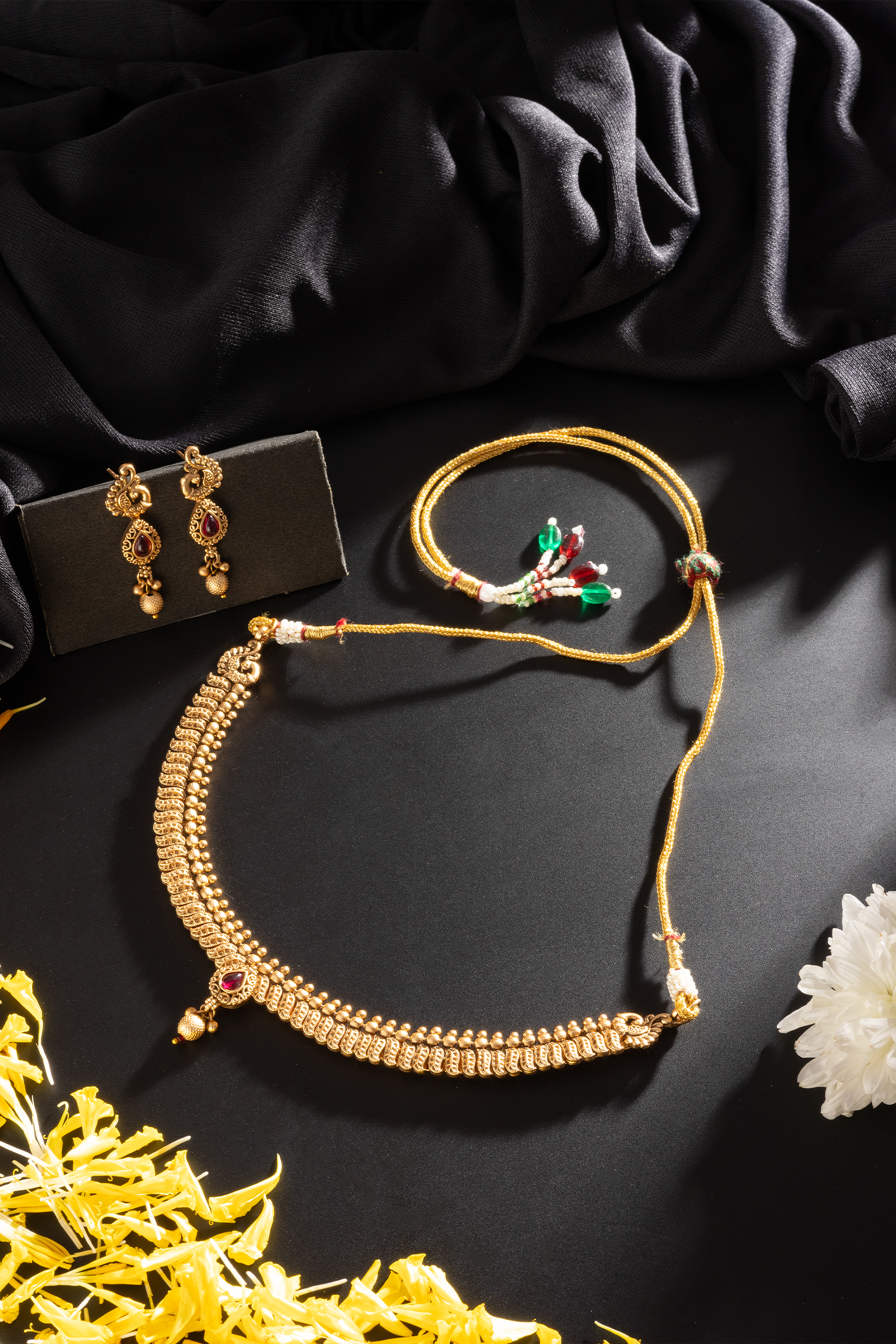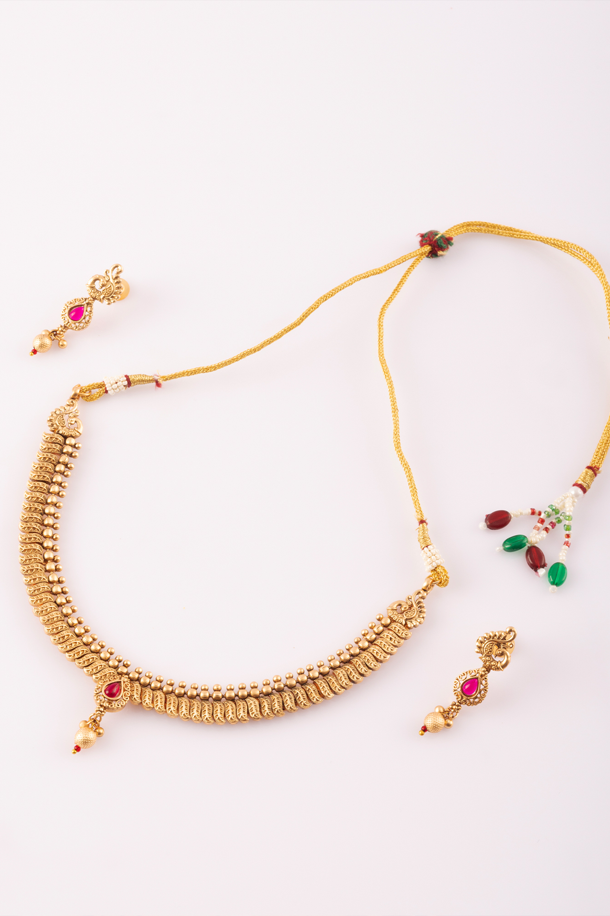 Antique Gold Plated Pink Stone Choker Necklace Set