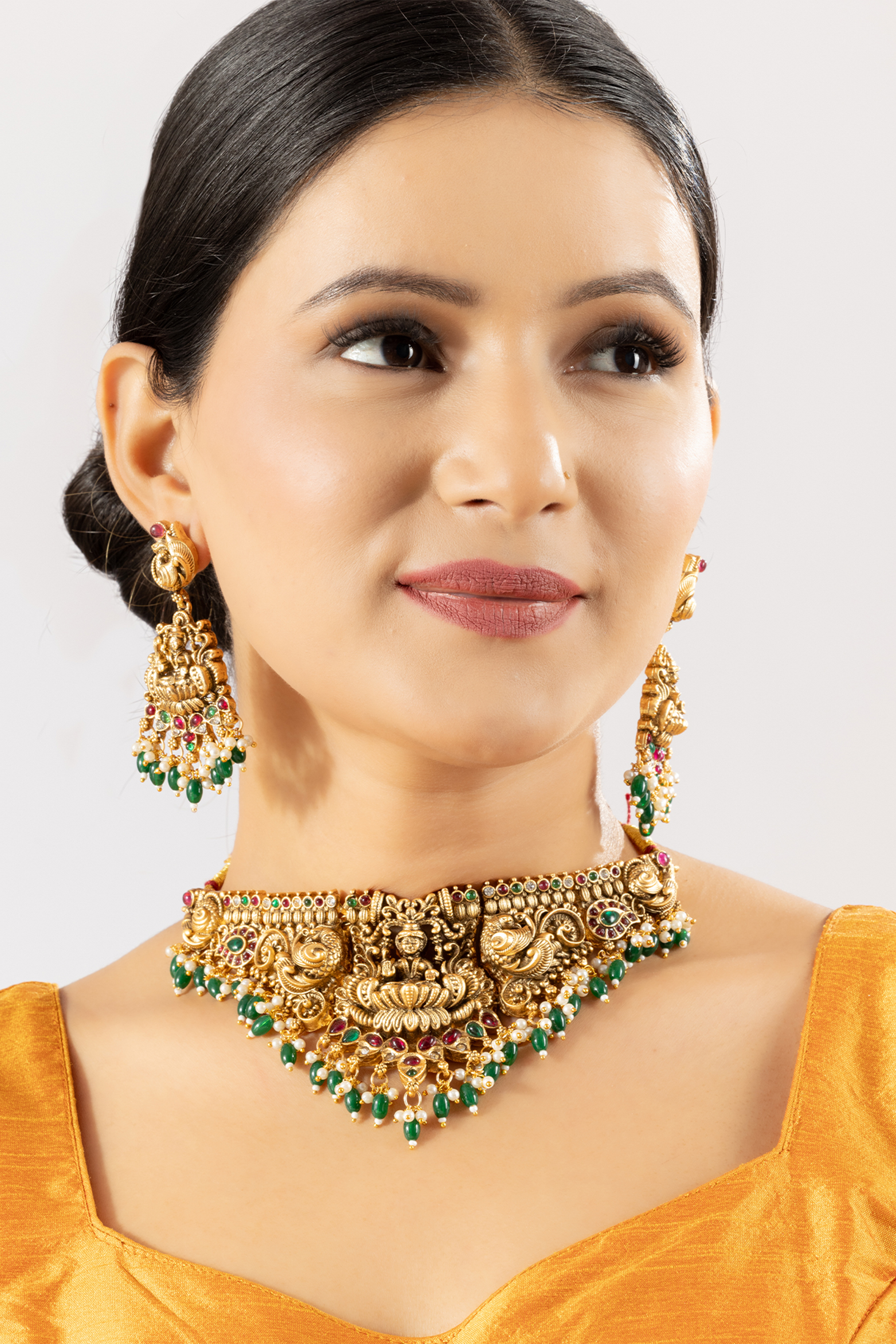 Antique Gold Plated Temple Choker Necklace Set