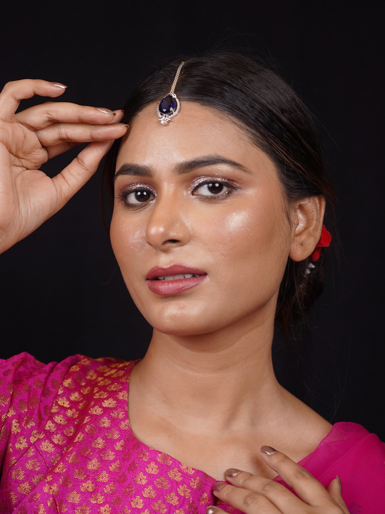 Crafted for those who appreciate luxury and fine detailing, this mangtikka beautifully complements both traditional and modern ensembles. Elevate your ethnic look effortlessly with this statement piece, designed to make you shine with grace and sophistication.