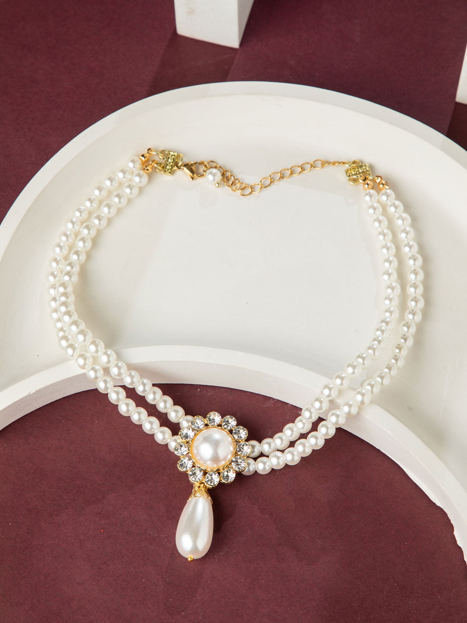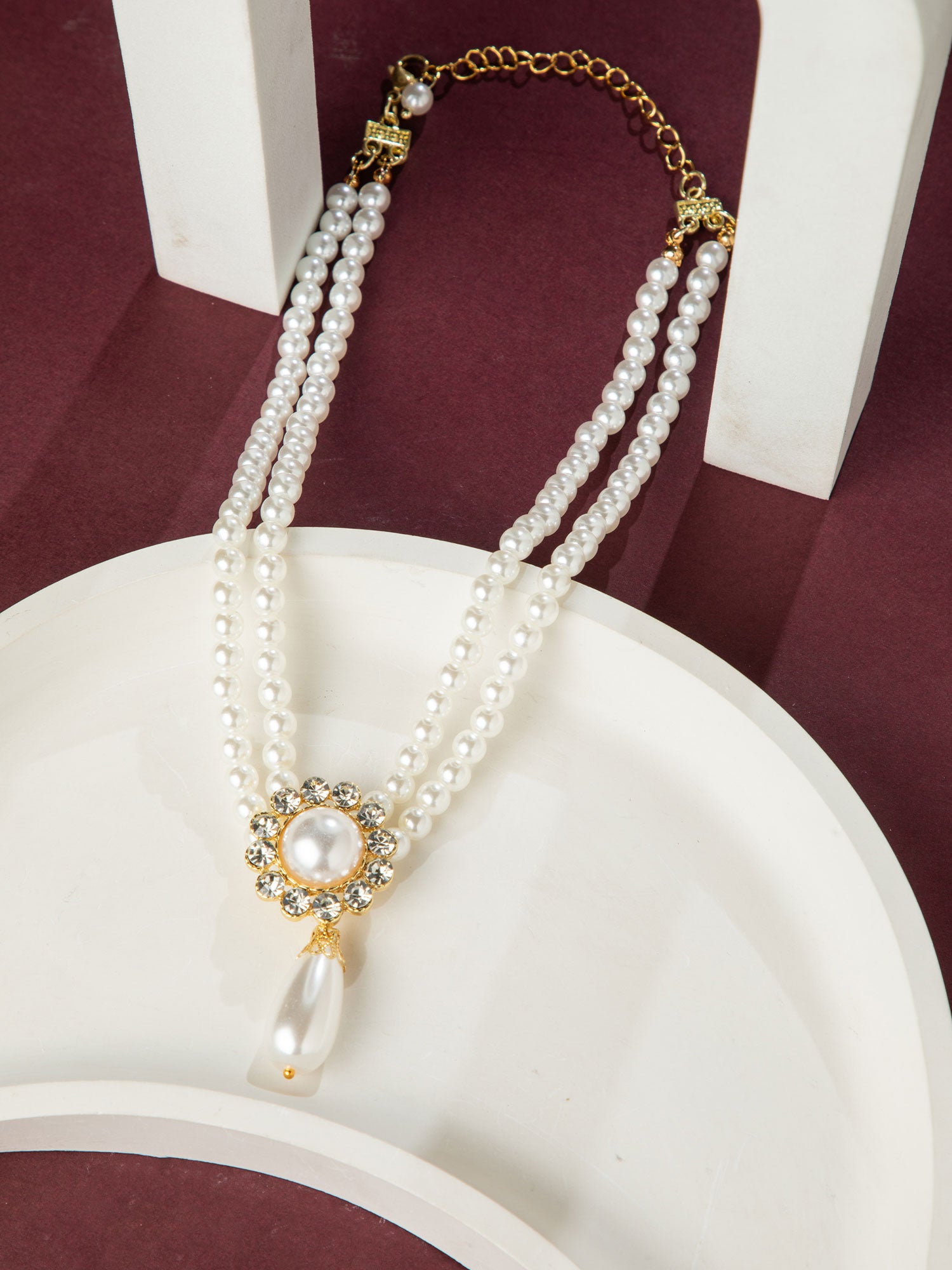 Elegant Double Layered Faux Pearl Necklace with CZ Pendant