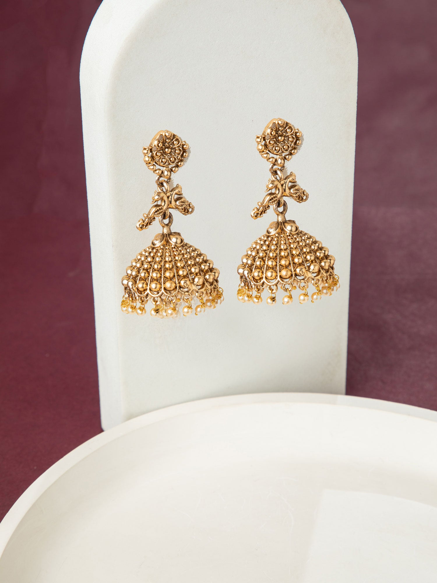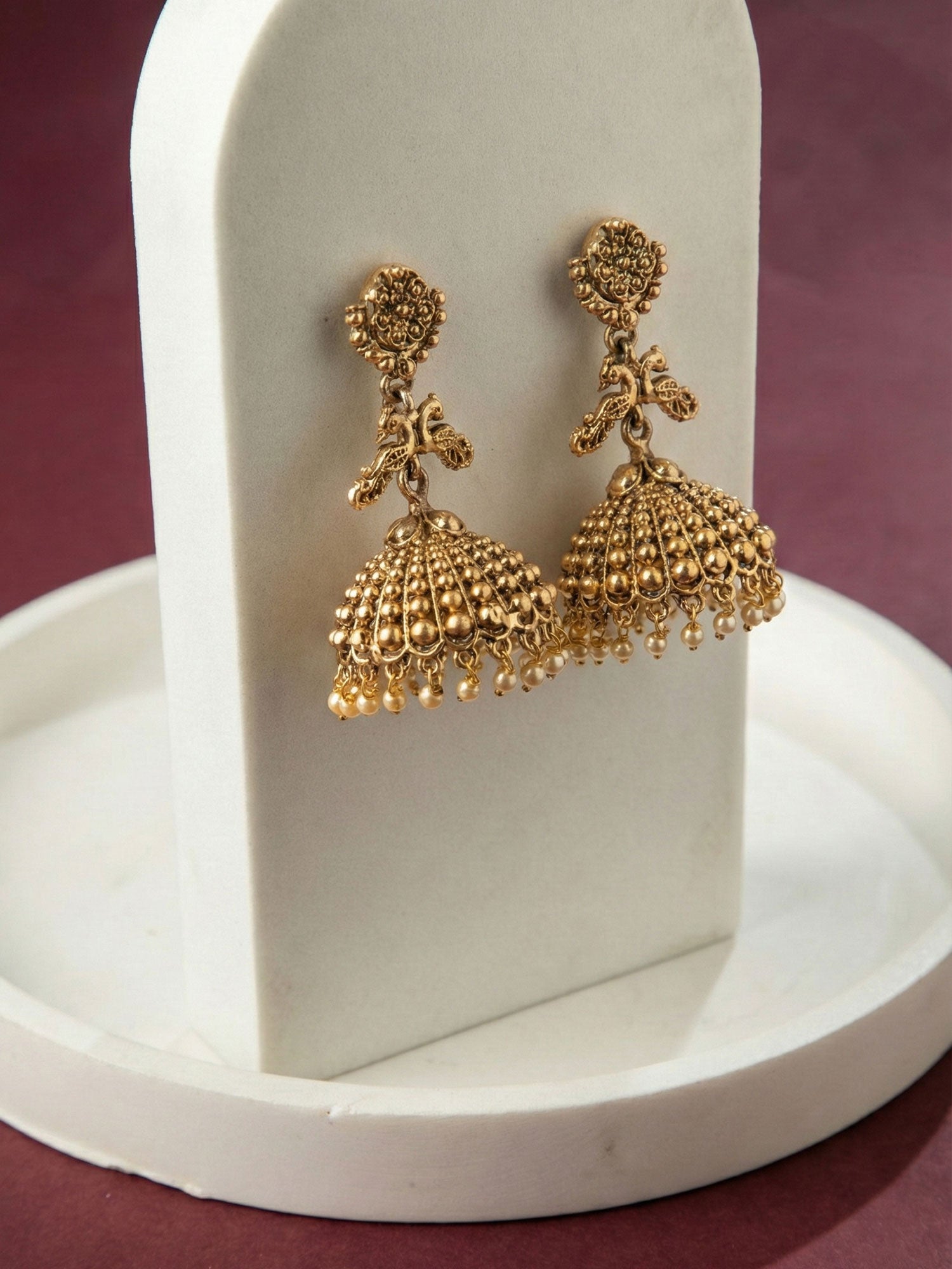 Elegant Gold Plated Peacock Jhumka Earrings