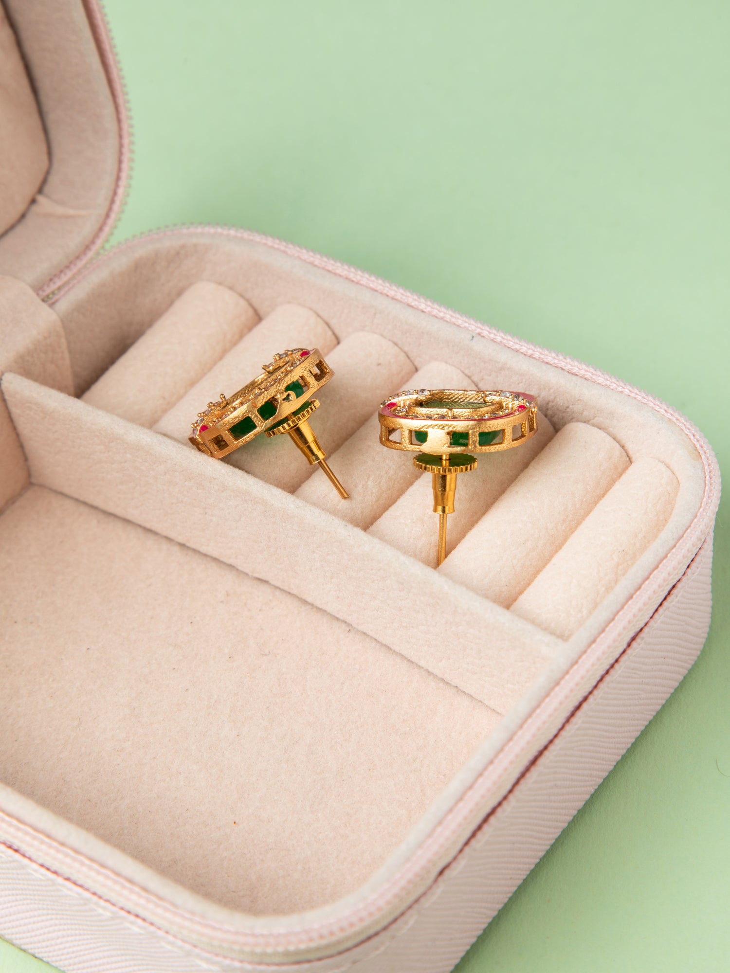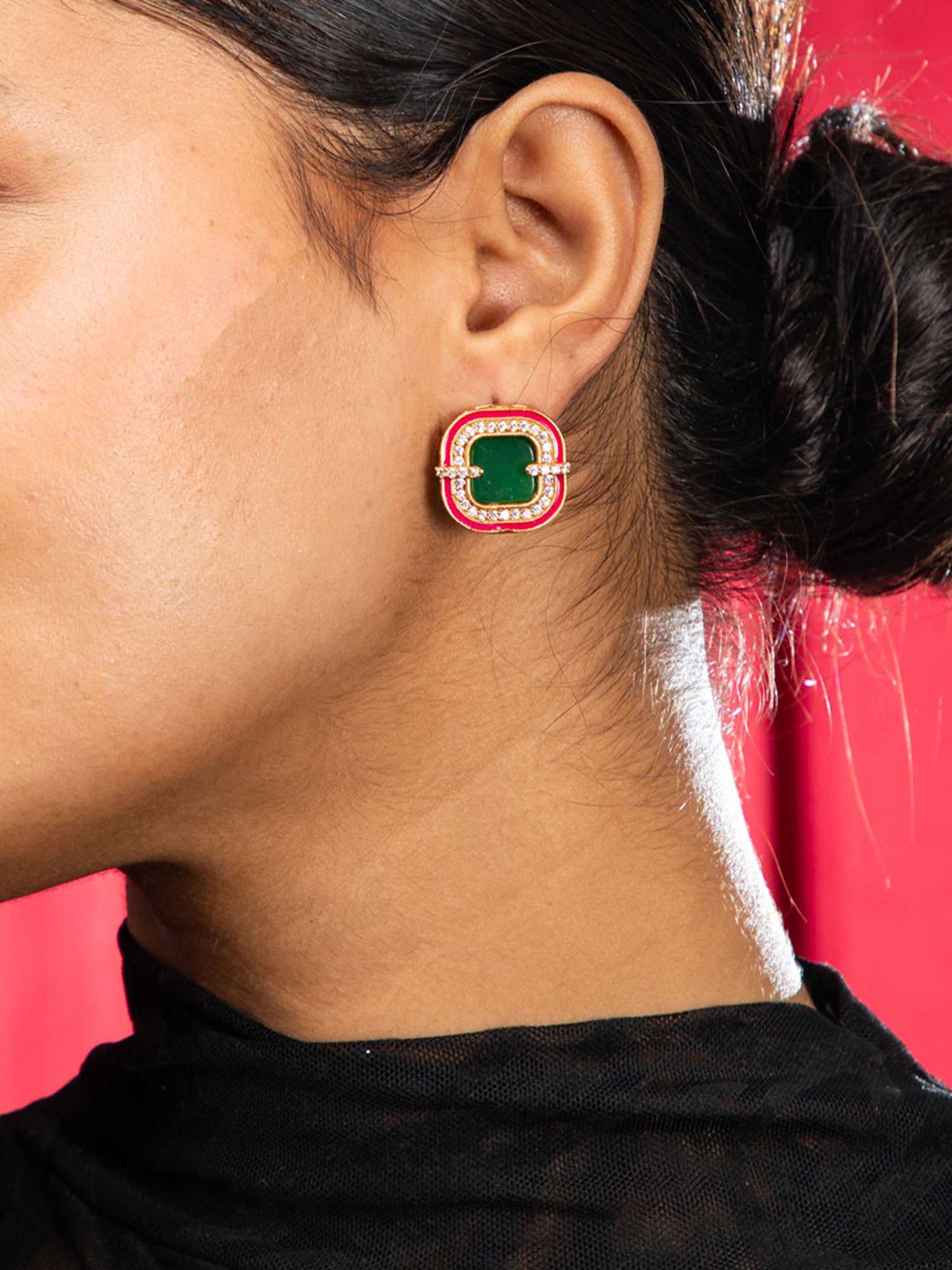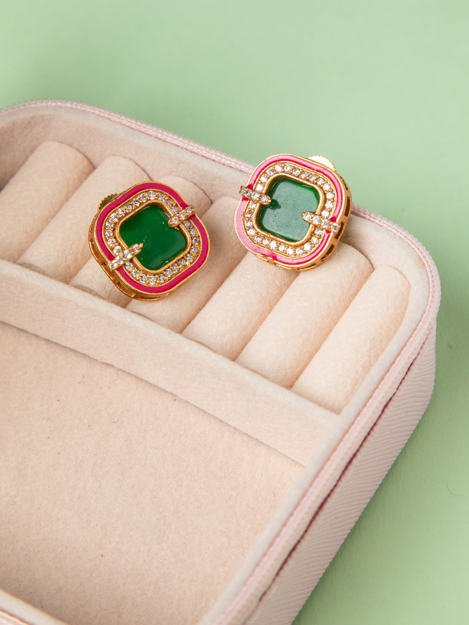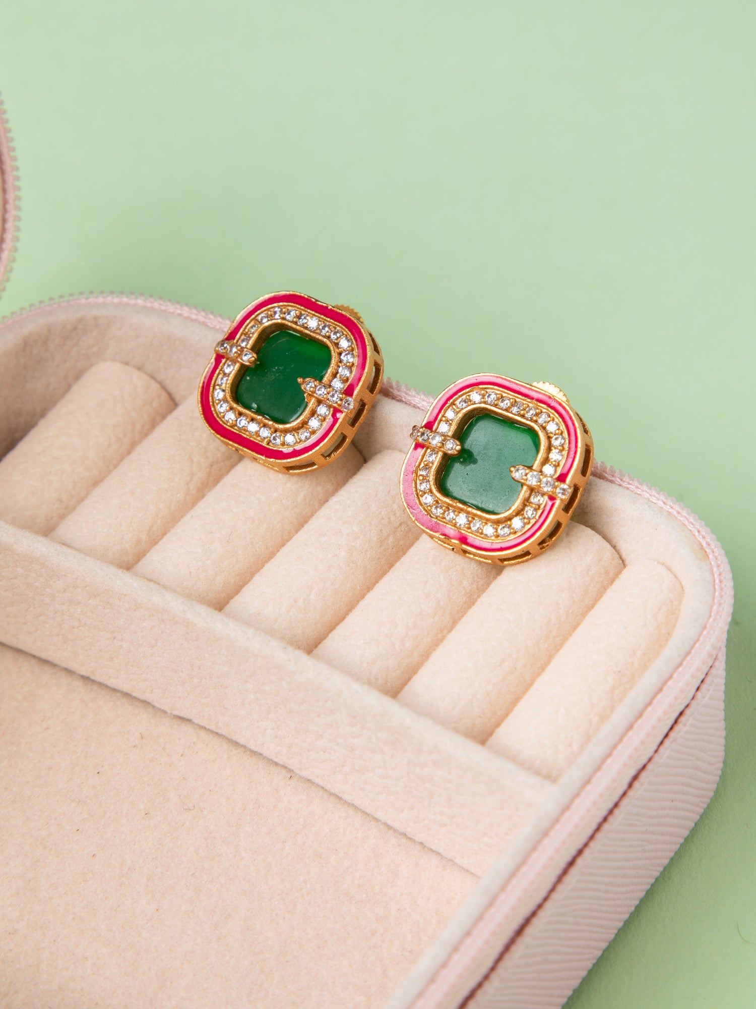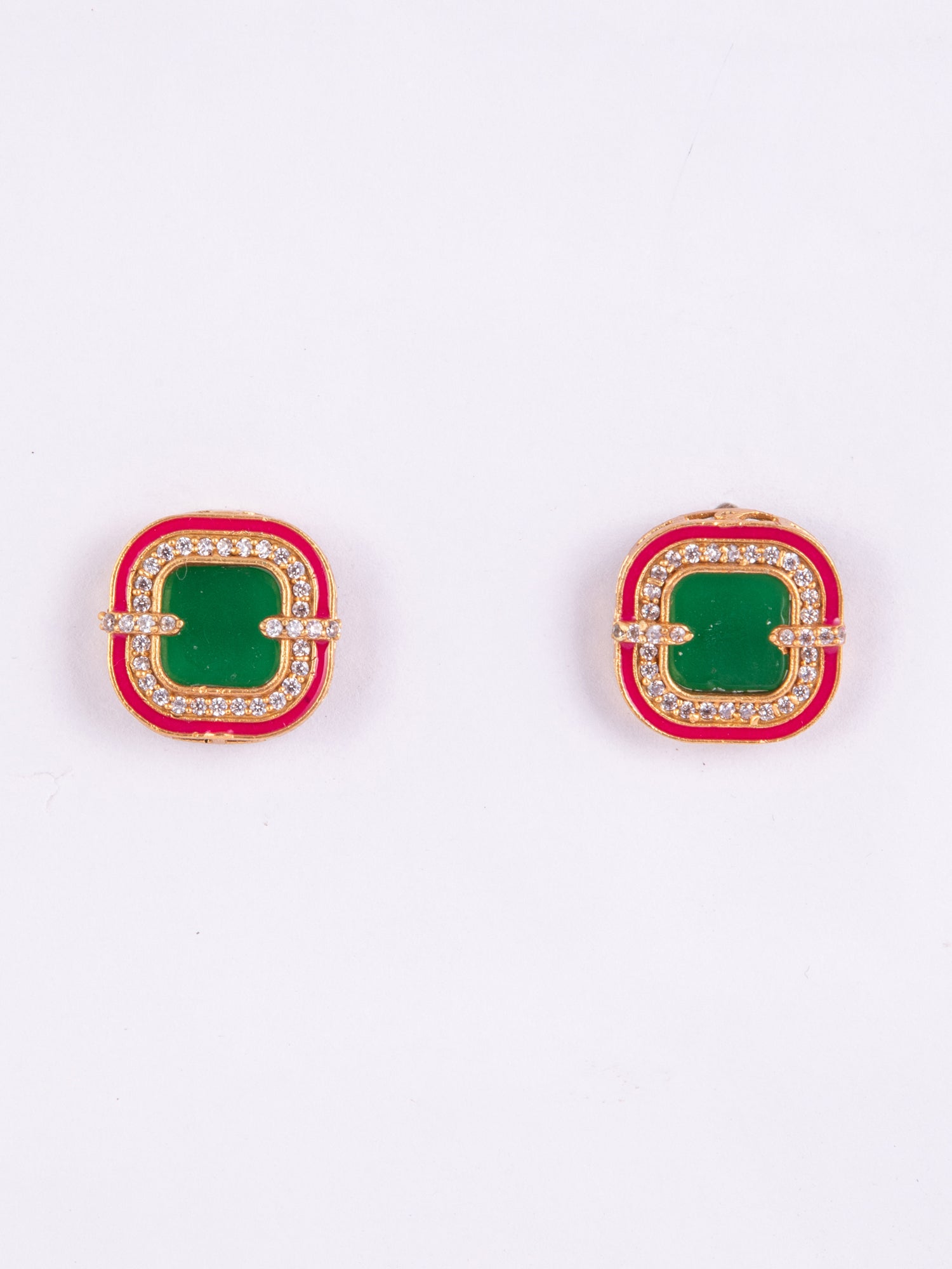 Emerald Glow Gold Plated Square Earrings