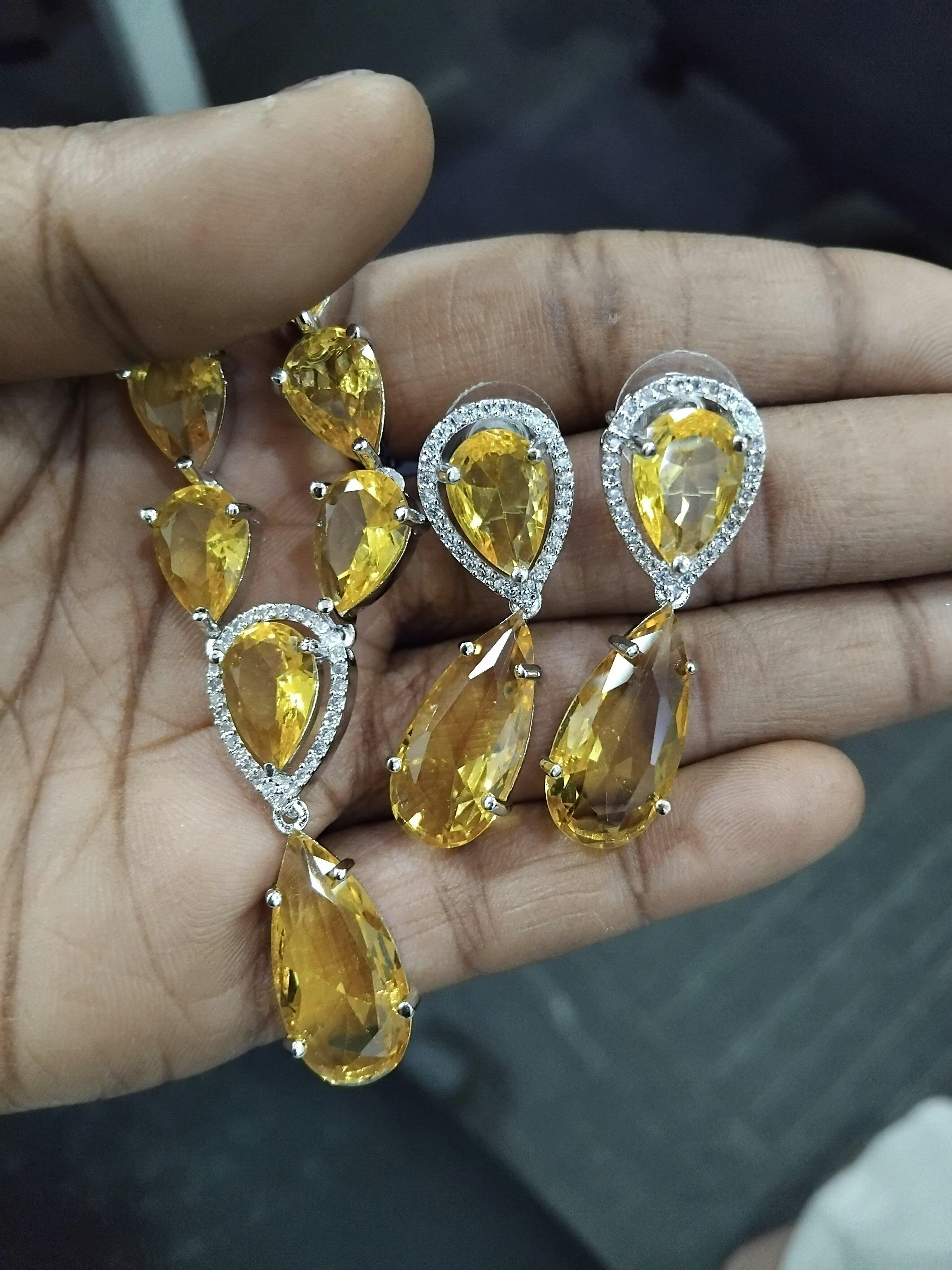 Exquisite Water Drop Yellow American Diamond Necklace and Earrings Set