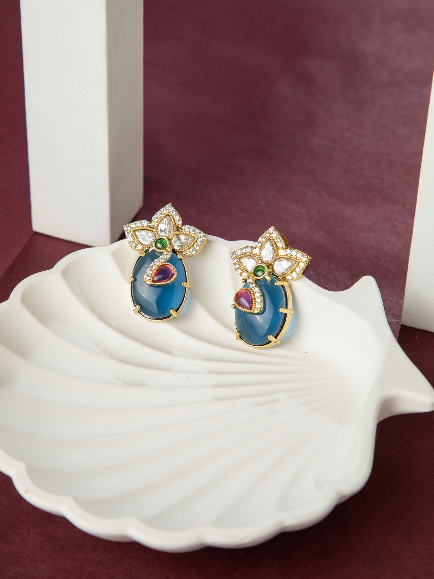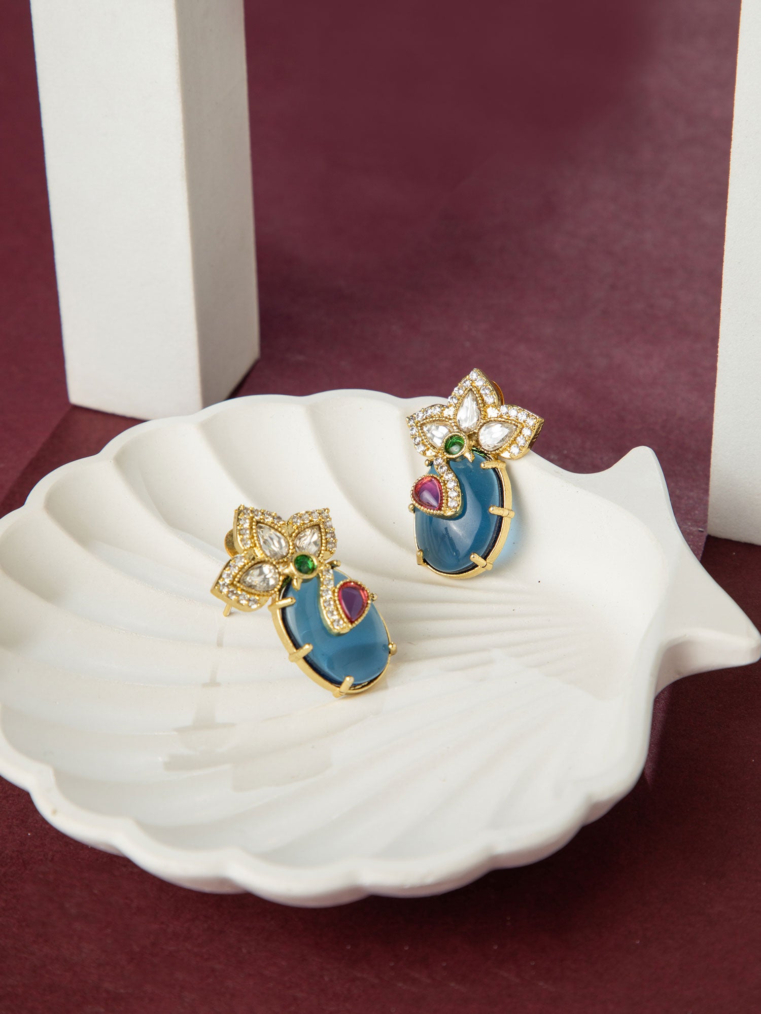 Gold Plated Blue Peacock Earrings