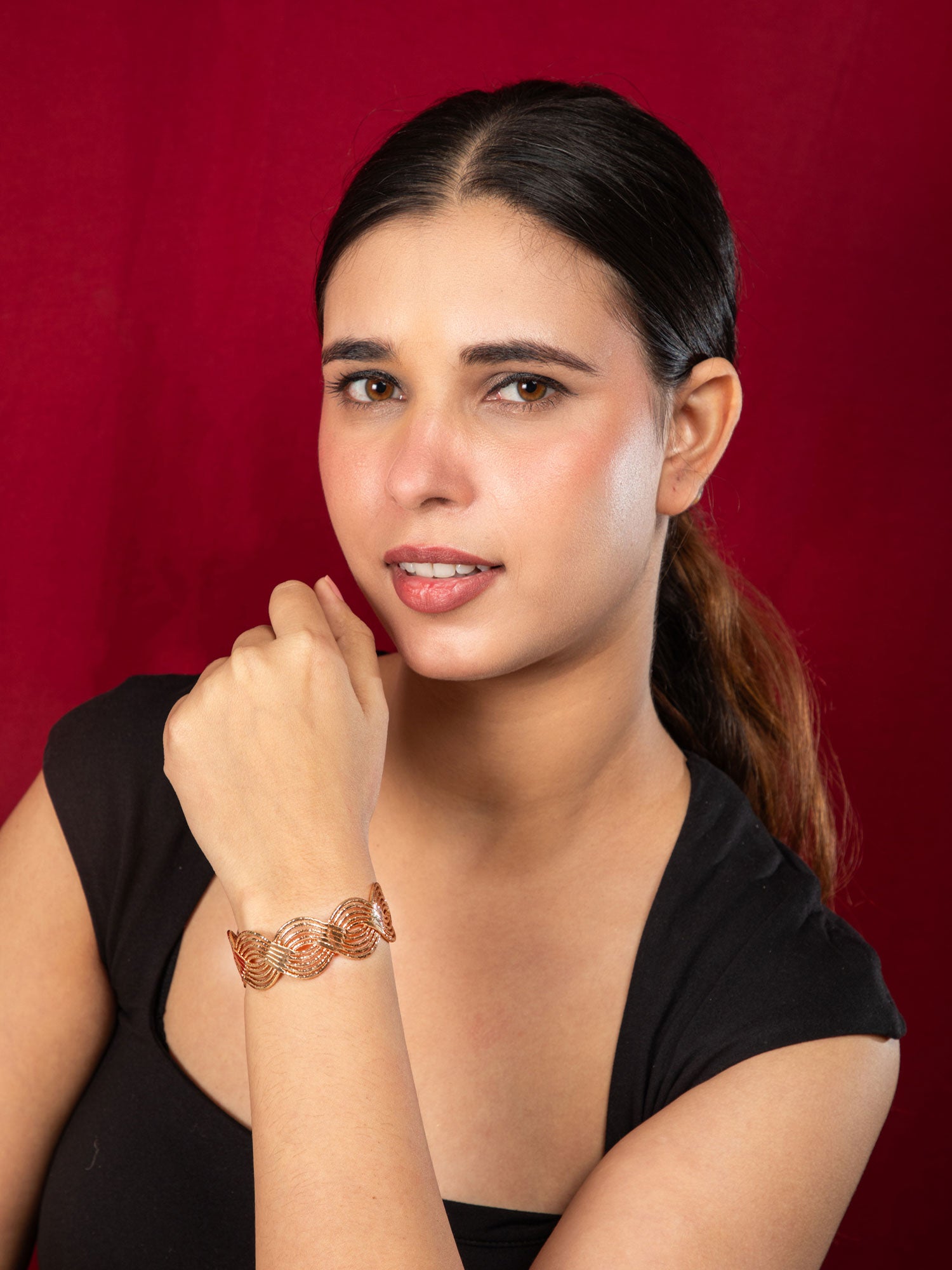 Gold Plated Entangled Wave Design Bracelet Kada