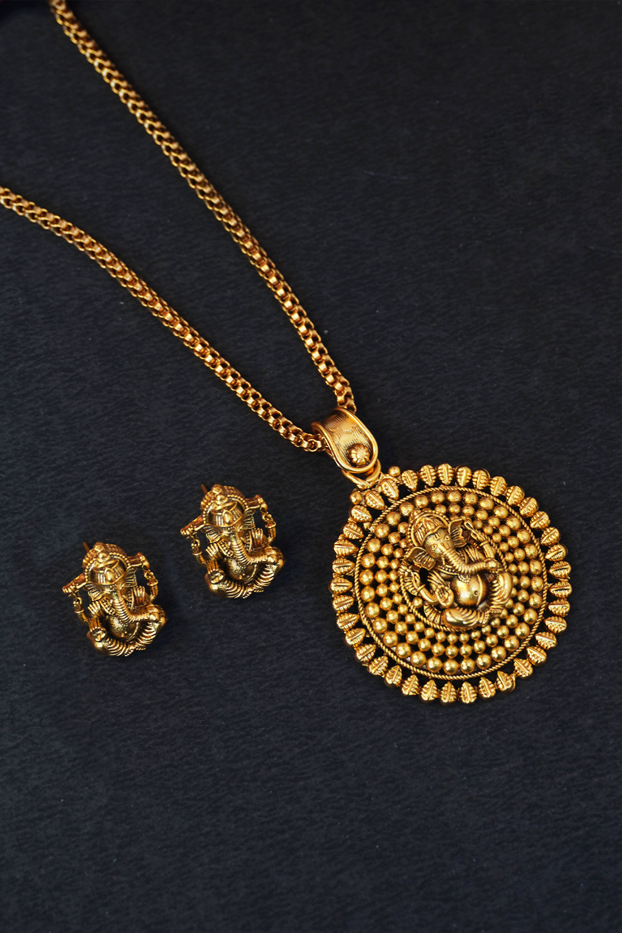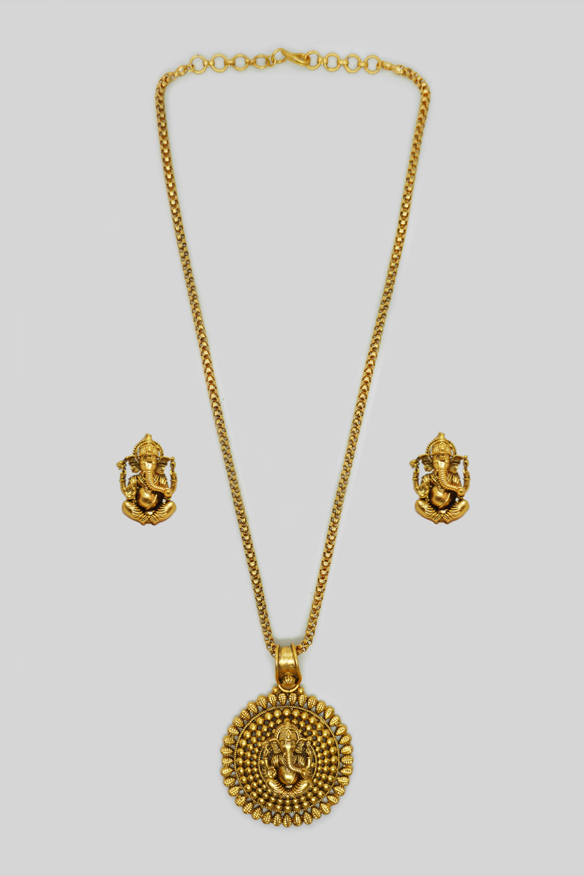 Gold Plated Ganesha Long Pendant Necklace Set