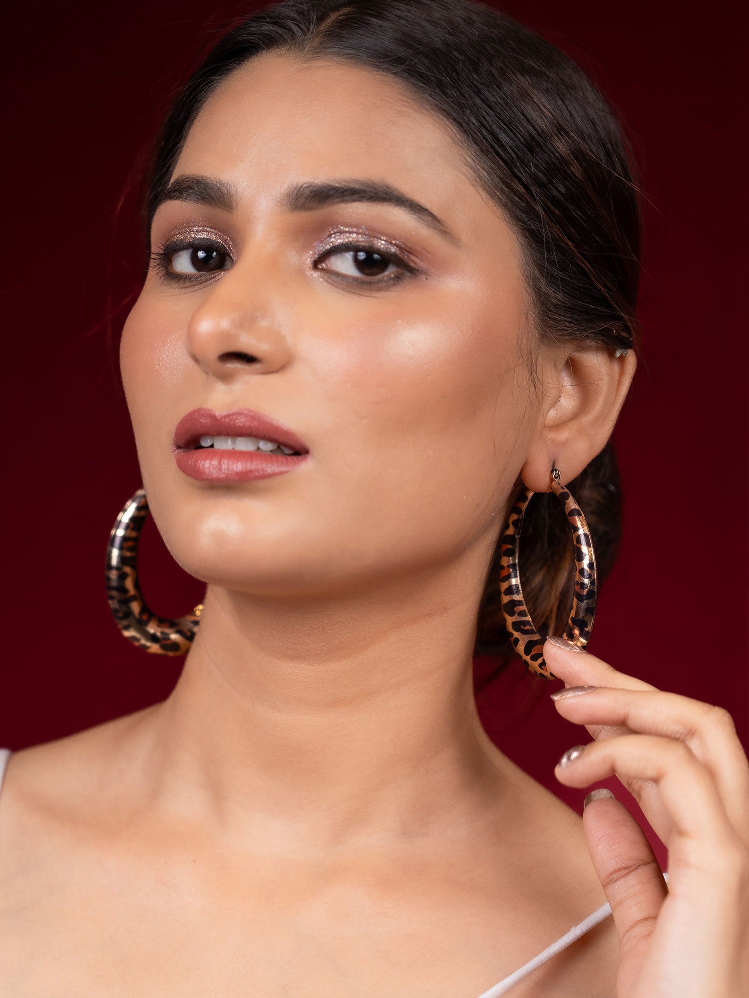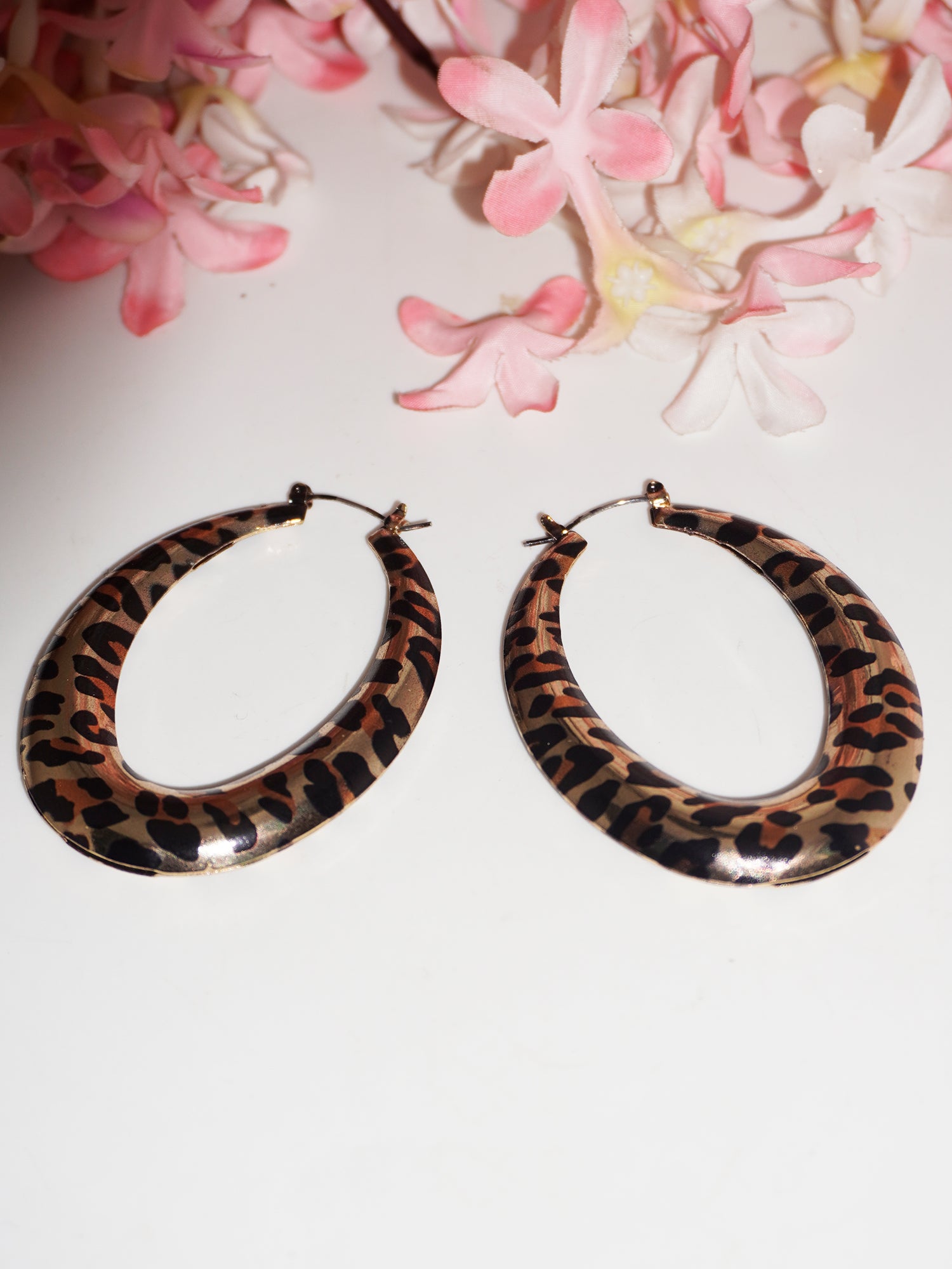 Make a statement with these gold-plated hoop earrings, designed to add a touch of wild elegance to your look. Featuring a striking animal print design, these hoops blend sophistication with a hint of bold flair. Their fancy yet versatile style makes them perfect for both casual and party wear, ensuring you stand out effortlessly. Lightweight and comfortable, these earrings bring a trendy edge to your jewelry collection. Elevate your style with a unique mix of classic hoops and fierce fashion.