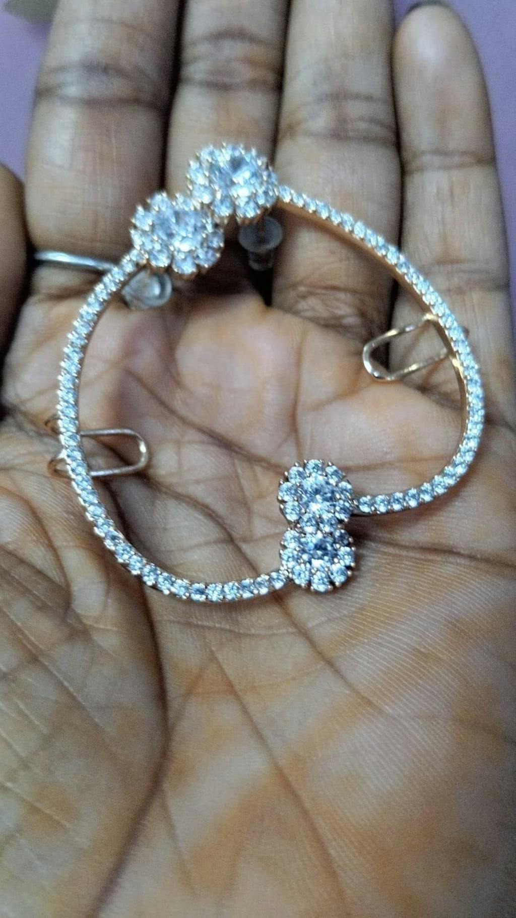 Gold Plated Long C-Shaped American Diamond Floral Earrings