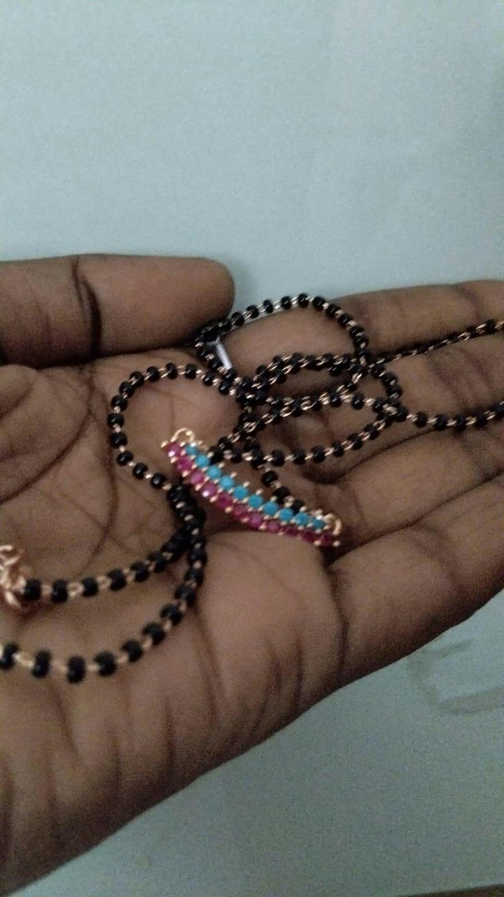 Enhance your casual look by pairing this exquisite mangalsutra with a simple blouse and jeans, or elevate your party attire by wearing it with a flowy dress to accentuate its stunning blue and pink stones.