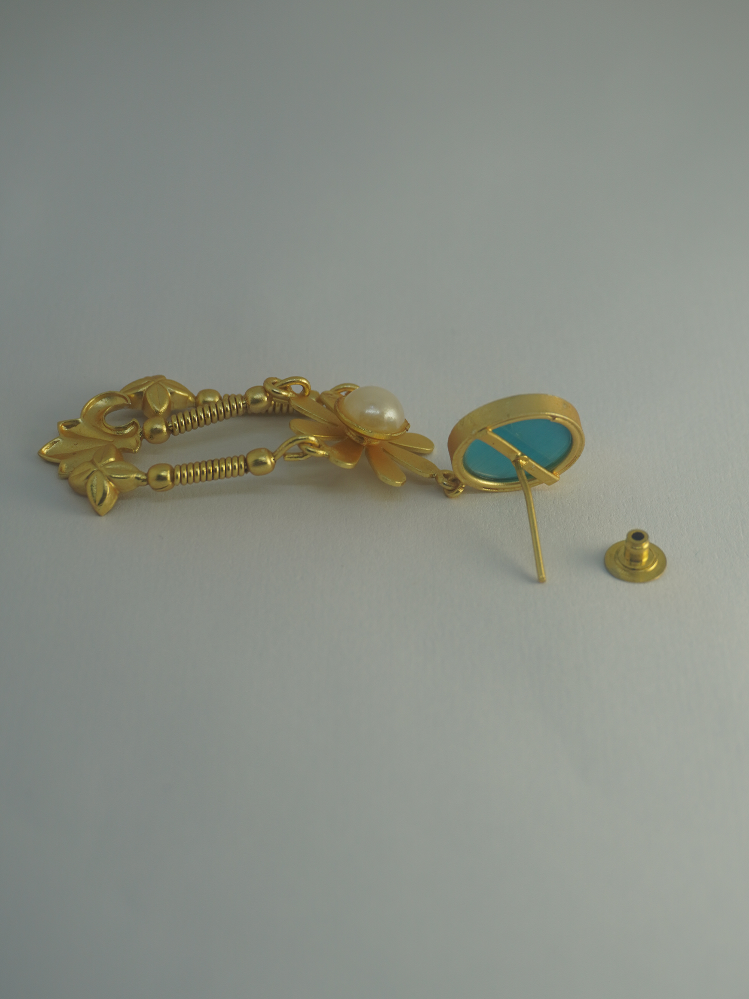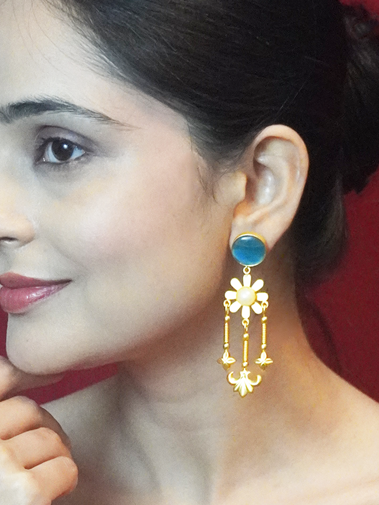 Add a touch of elegance with our Gold Plated Matte Dangler Earrings featuring a blue round stone and white faux pearl. Handcrafted by skilled local artisans, these earrings embody modern sophistication and are versatile for both daily wear and special occasions, ensuring you sparkle with style wherever you go.
