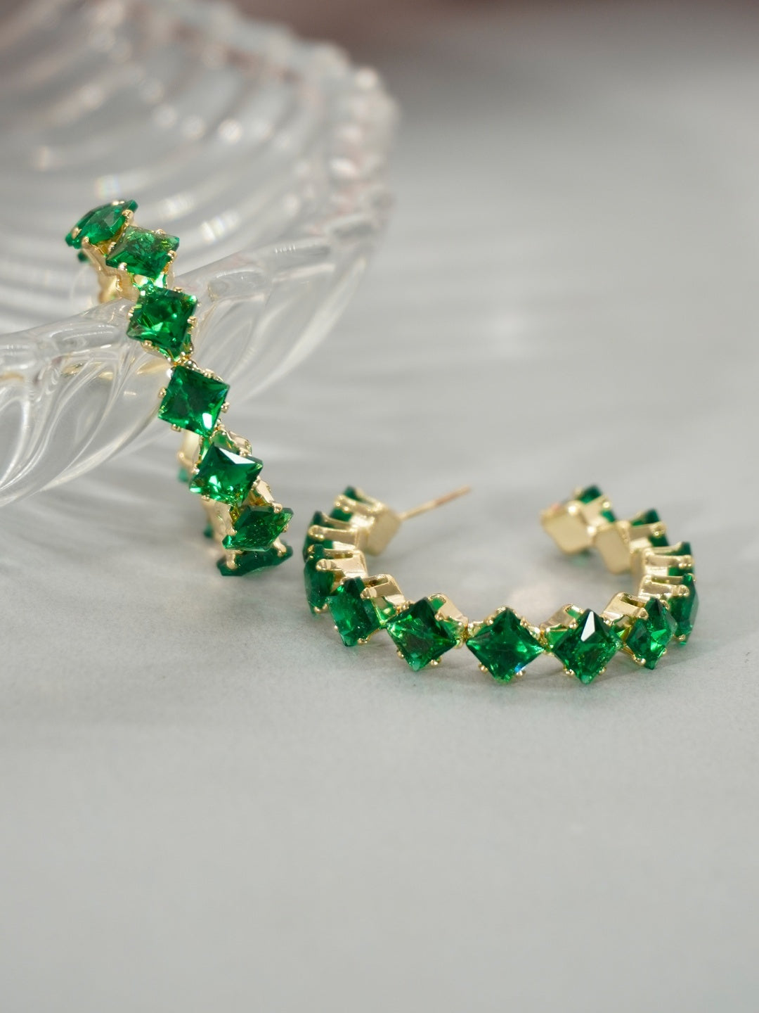 Add a pop of color to your western look with these chic semi-hoop earrings. Crafted with gold plating, these earrings feature a vibrant emerald green accent that adds a bold, yet elegant touch to your ensemble. The sleek semi-hoop design gives them a modern, stylish appeal, perfect for pairing with both casual and dressy outfits.