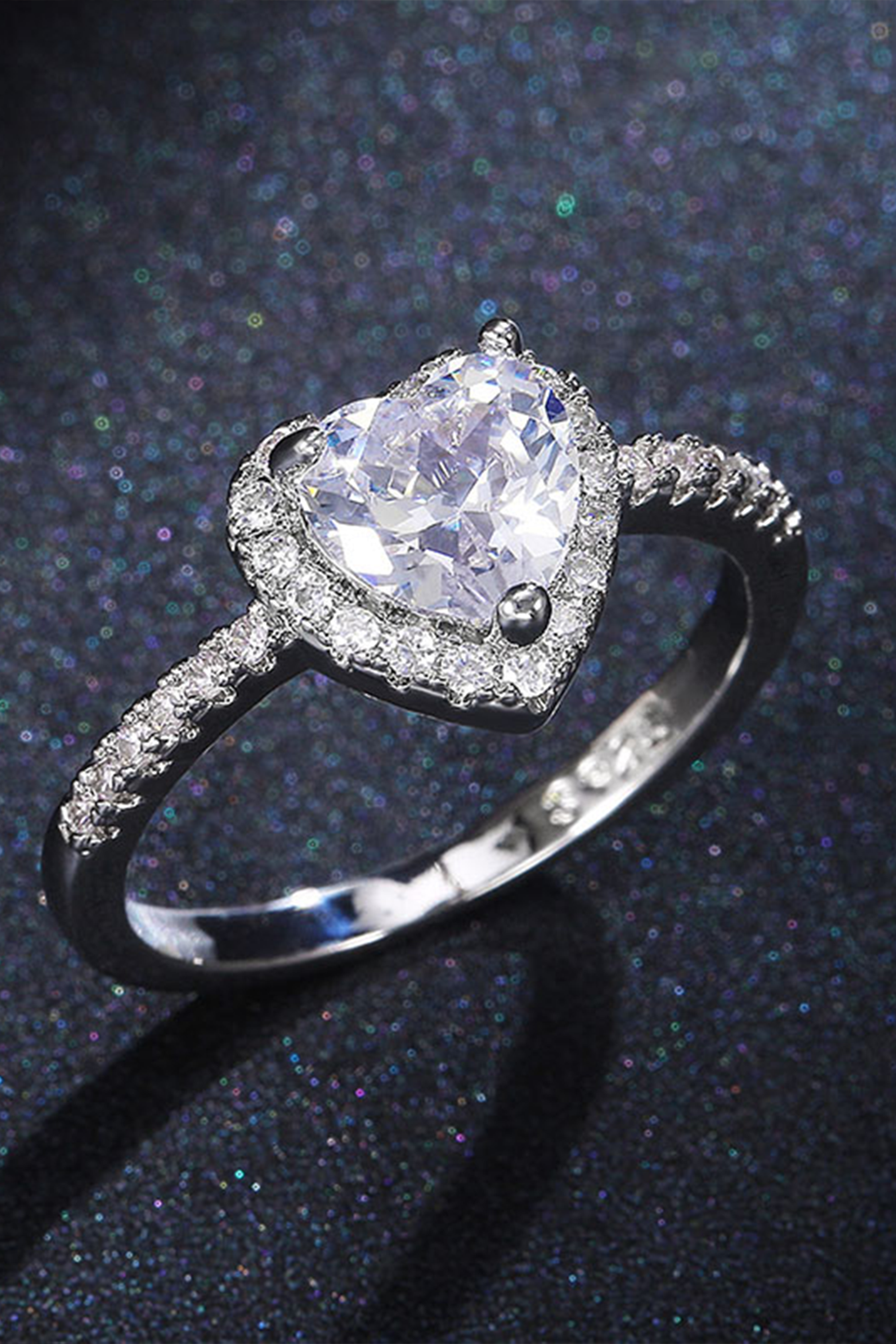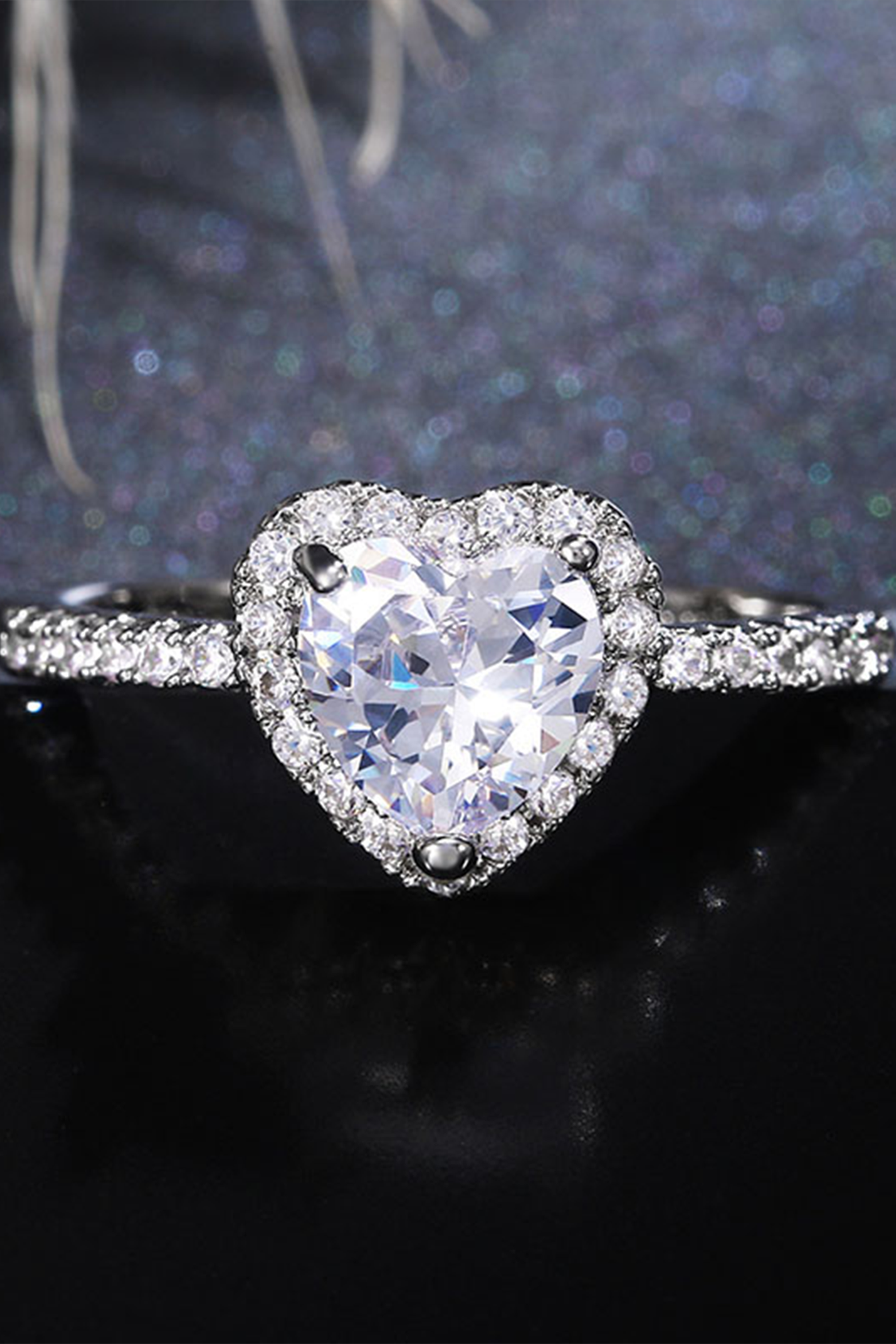 Heart Shape Solitaire American Diamond Silver Proposal Ring