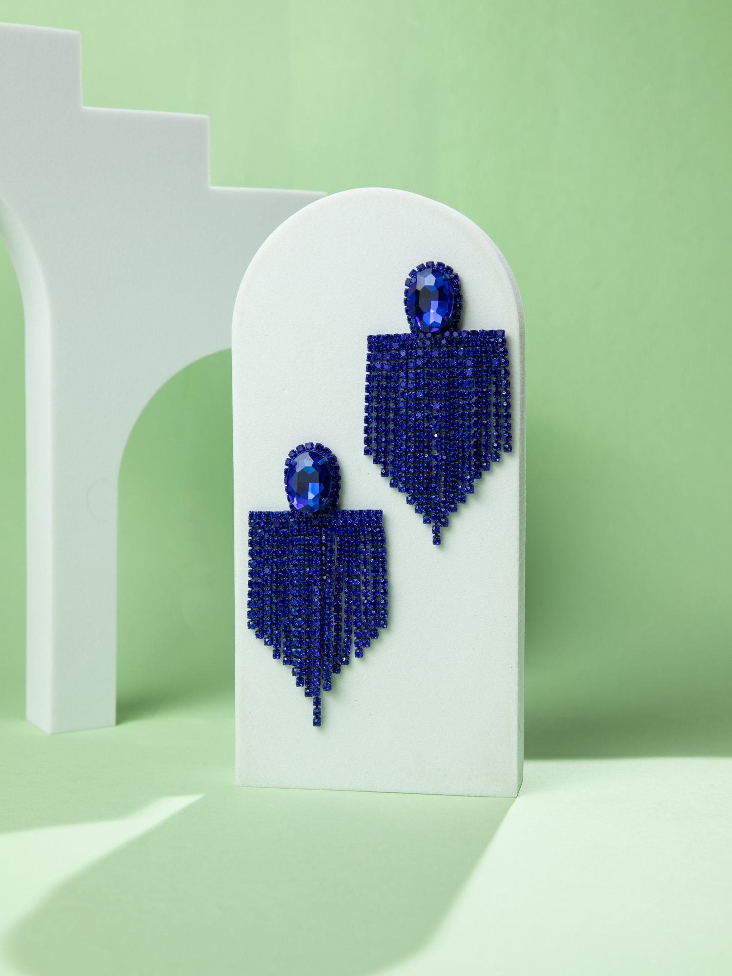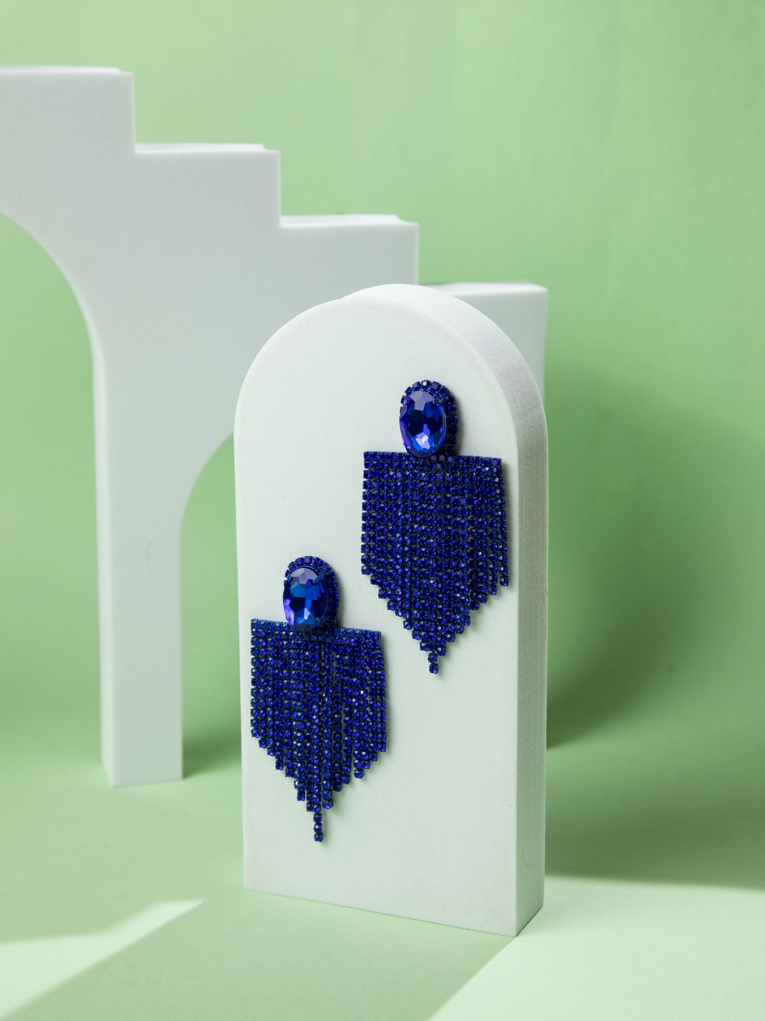 Large Blue Multi Layer Dangler Earrings with Vibrant Top Stone
