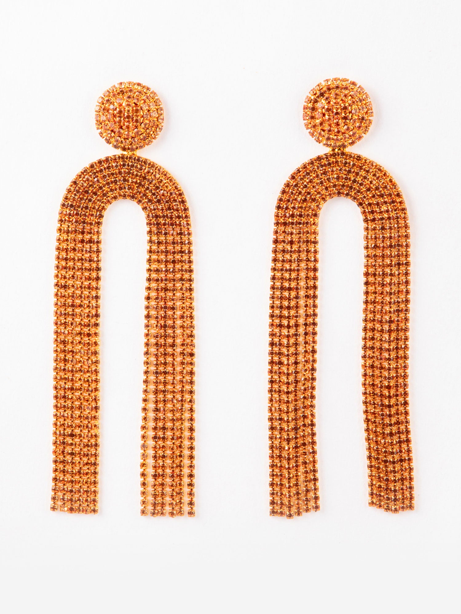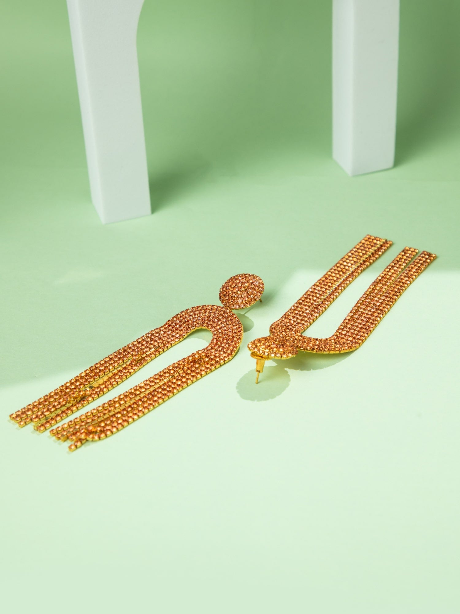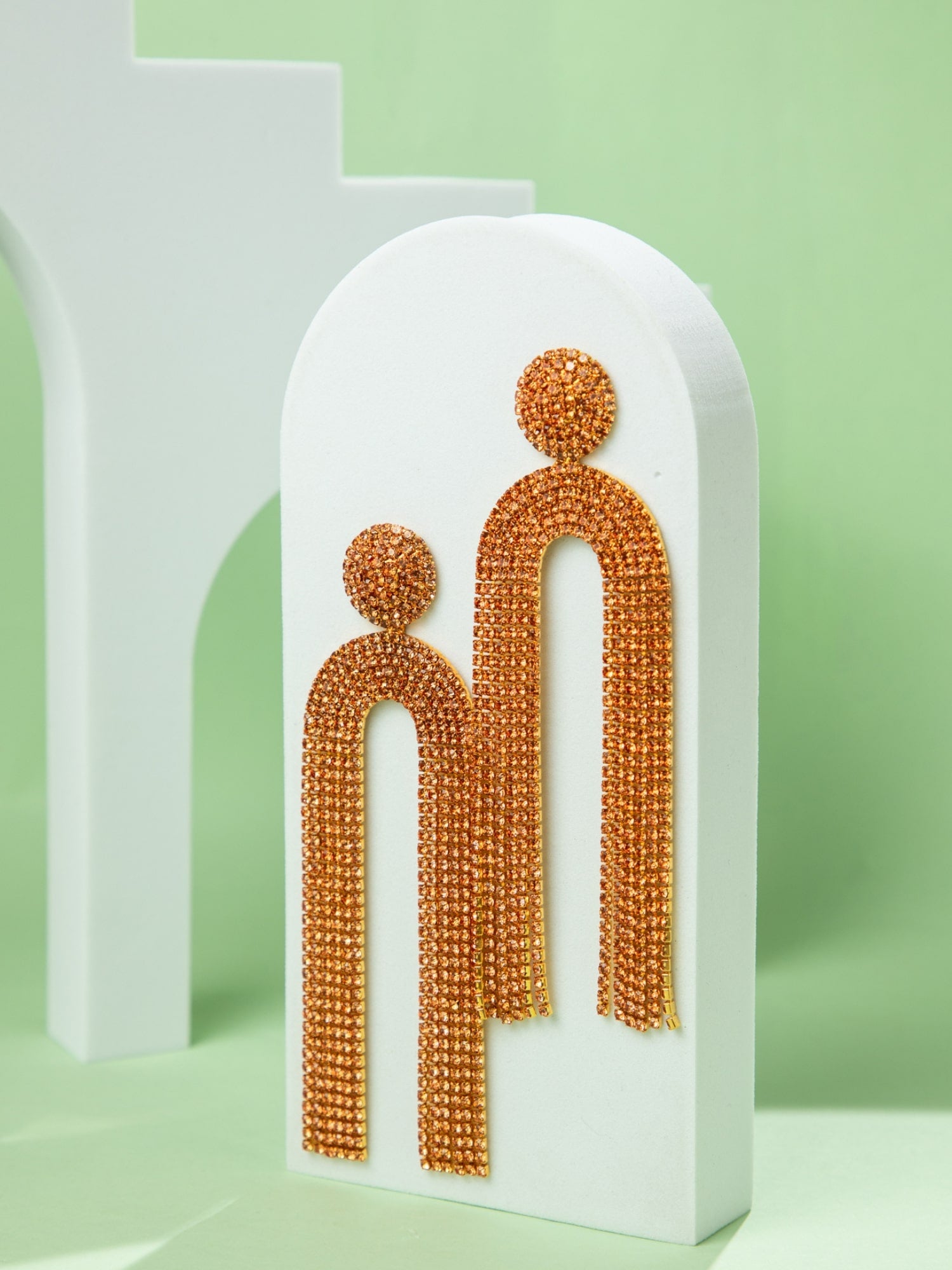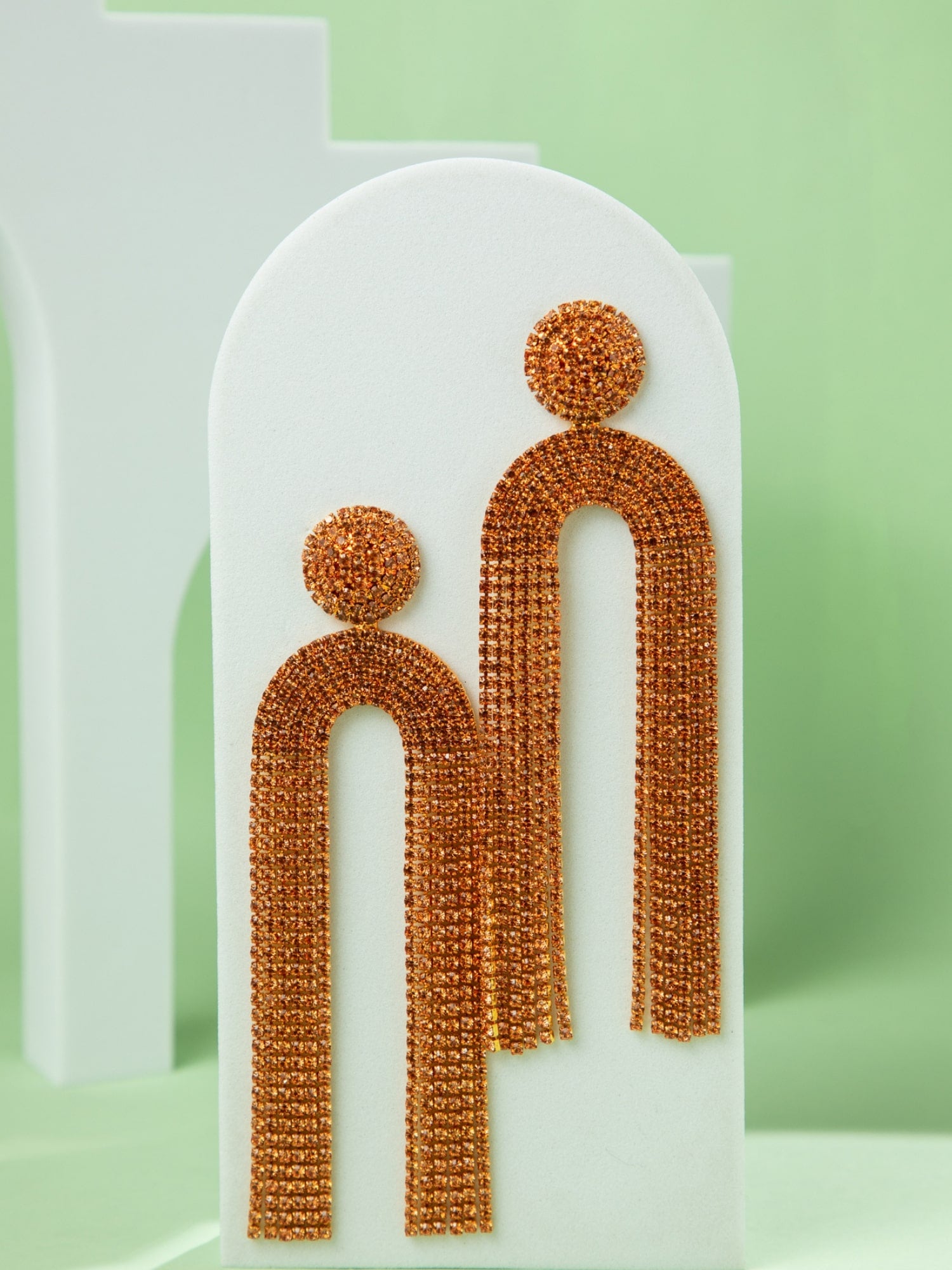 Large Pink Stone C Arc Multilayer Dangler Earrings