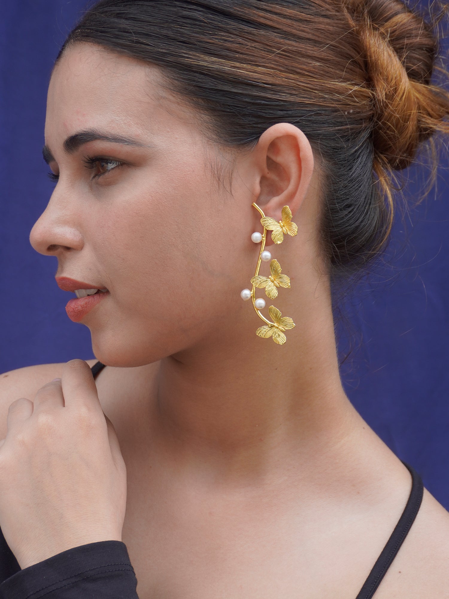 Elevate your style with the Niscka Luxe Pearl Gold Plated Butterfly Earring. These stunning earrings feature elegant pearls nestled within a beautifully crafted gold-plated butterfly design. The rich gold plating accentuates the natural luster of the pearls, creating a luxurious and sophisticated look. The butterfly motif adds a playful yet refined touch, making these earrings a perfect choice for both everyday elegance and special occasions. With their classic charm and contemporary flair, the Niscka Luxe Pearl Butterfly Earrings are sure to become a cherished addition to your jewelry collection.