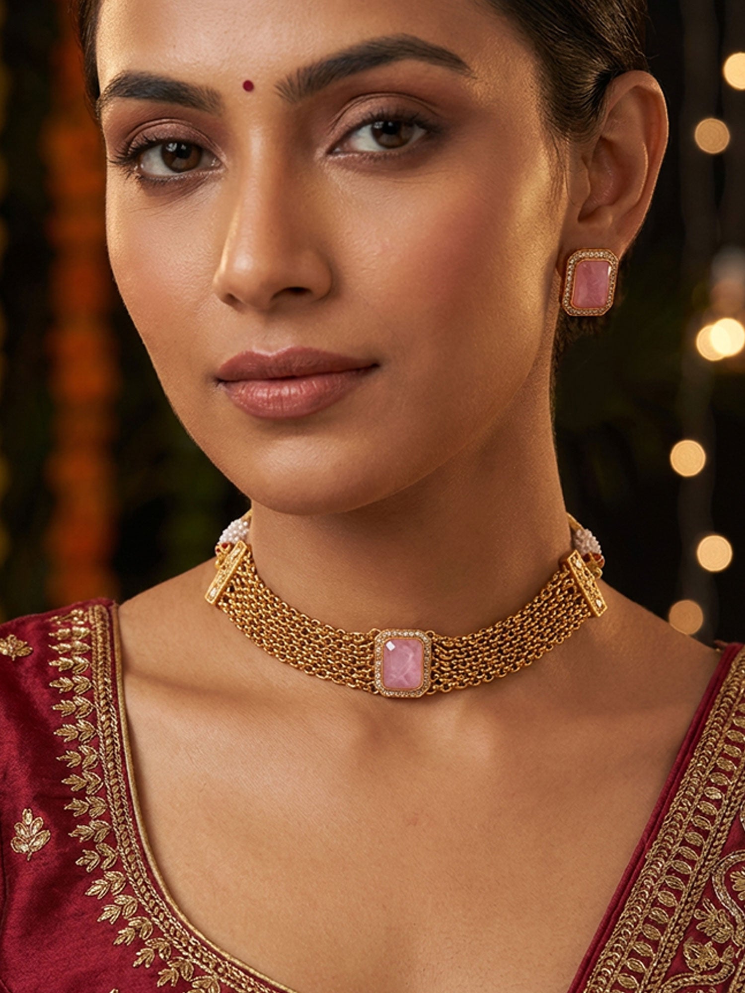 Matte Gold Plated Choker Necklace with Earrings
