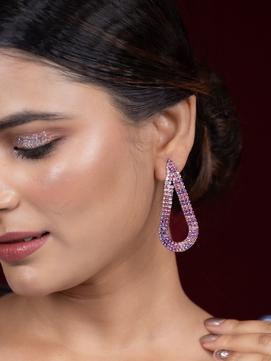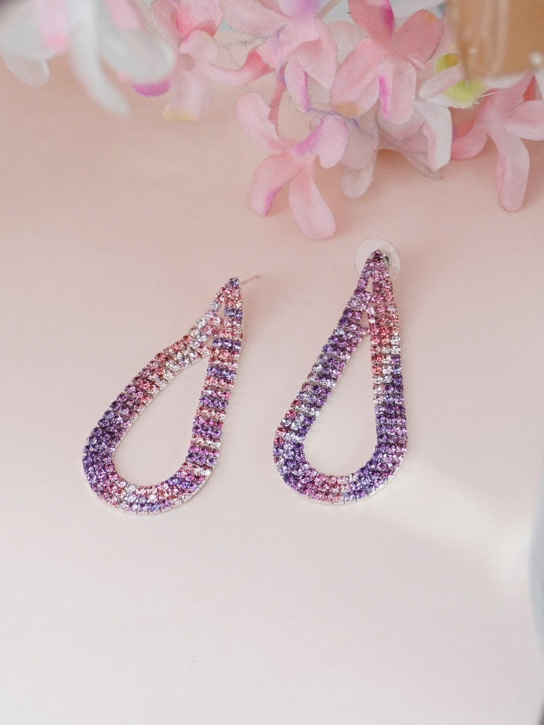 Make a statement with these multi-color water drop crystal dangler earrings. Designed to catch the light with every movement, these earrings feature radiant crystals in a stunning array of colors, arranged in a water drop shape for a graceful, elongated effect. The dangler design adds an element of elegance and fluidity, perfect for both casual and formal occasions.