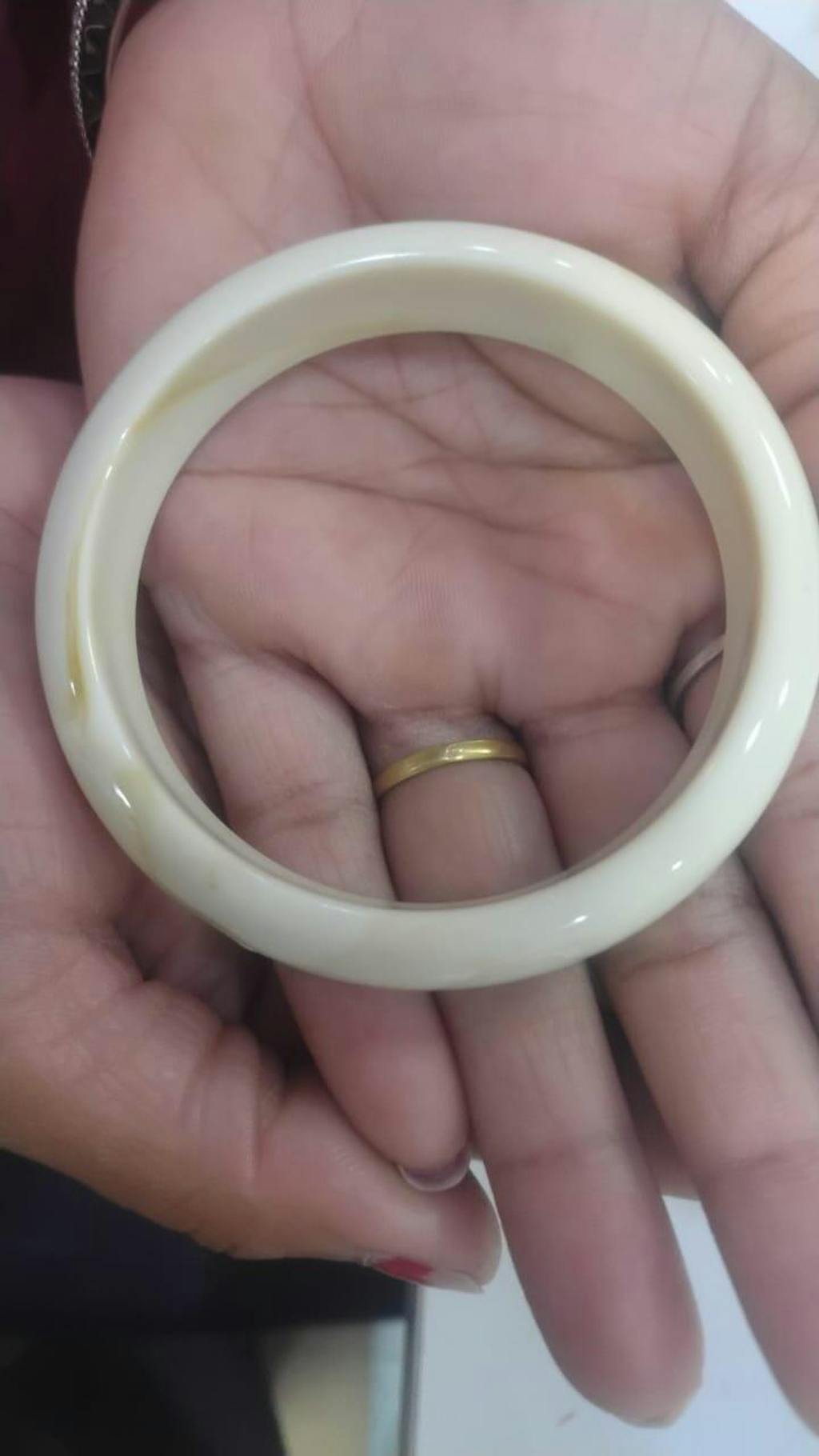 For a chic and effortless look, pair this coffee-colored bangle with neutral tones like beige, cream, or soft brown to complement its rich hue. It works beautifully with a flowy blouse and tailored trousers for a sophisticated day-to-night outfit. For a more casual style, wear it with a simple white t-shirt and denim jeans to add a touch of warmth and elegance to your everyday look. Whether dressing up or down, this bangle adds a subtle yet stylish statement to any outfit.