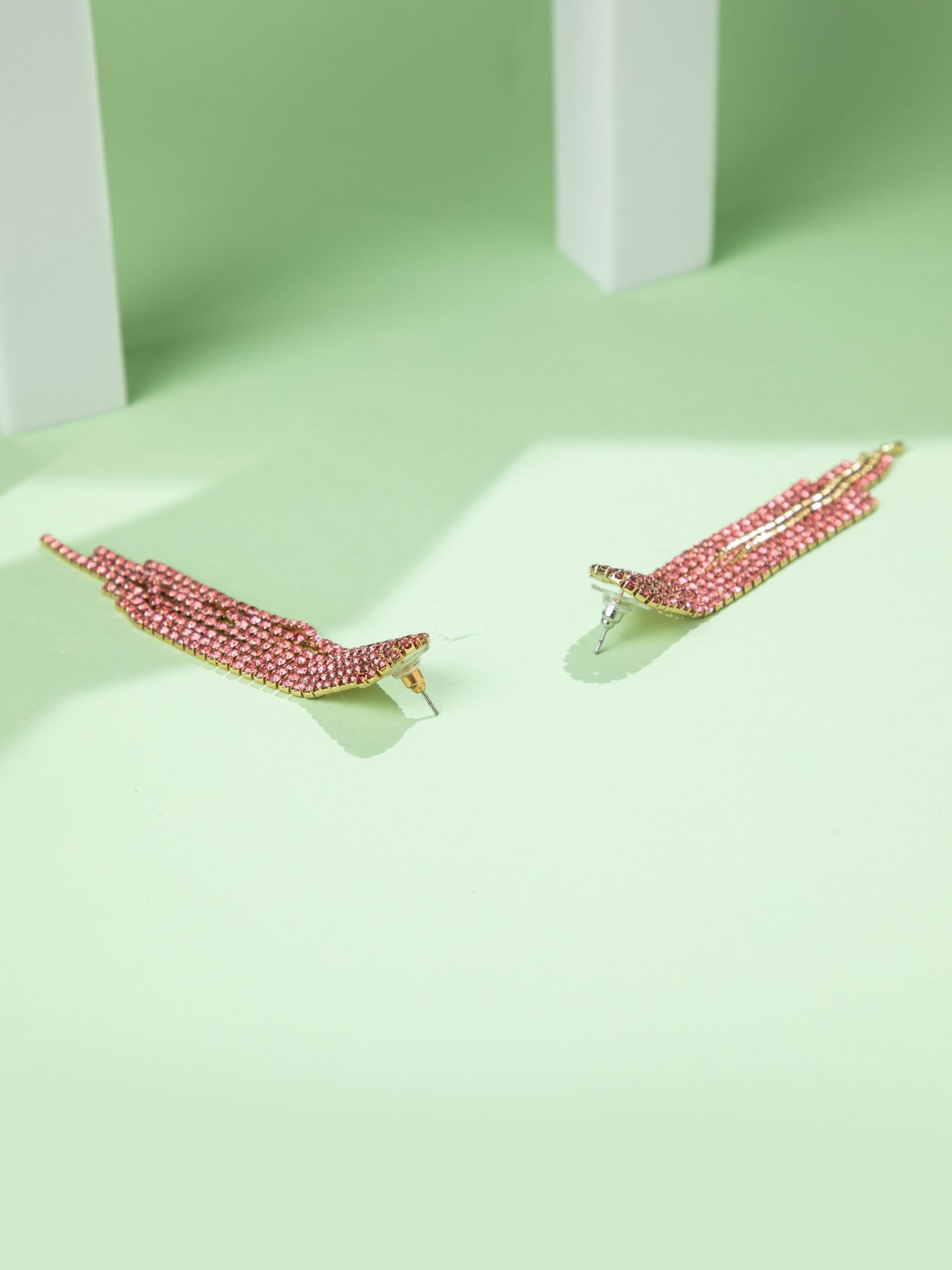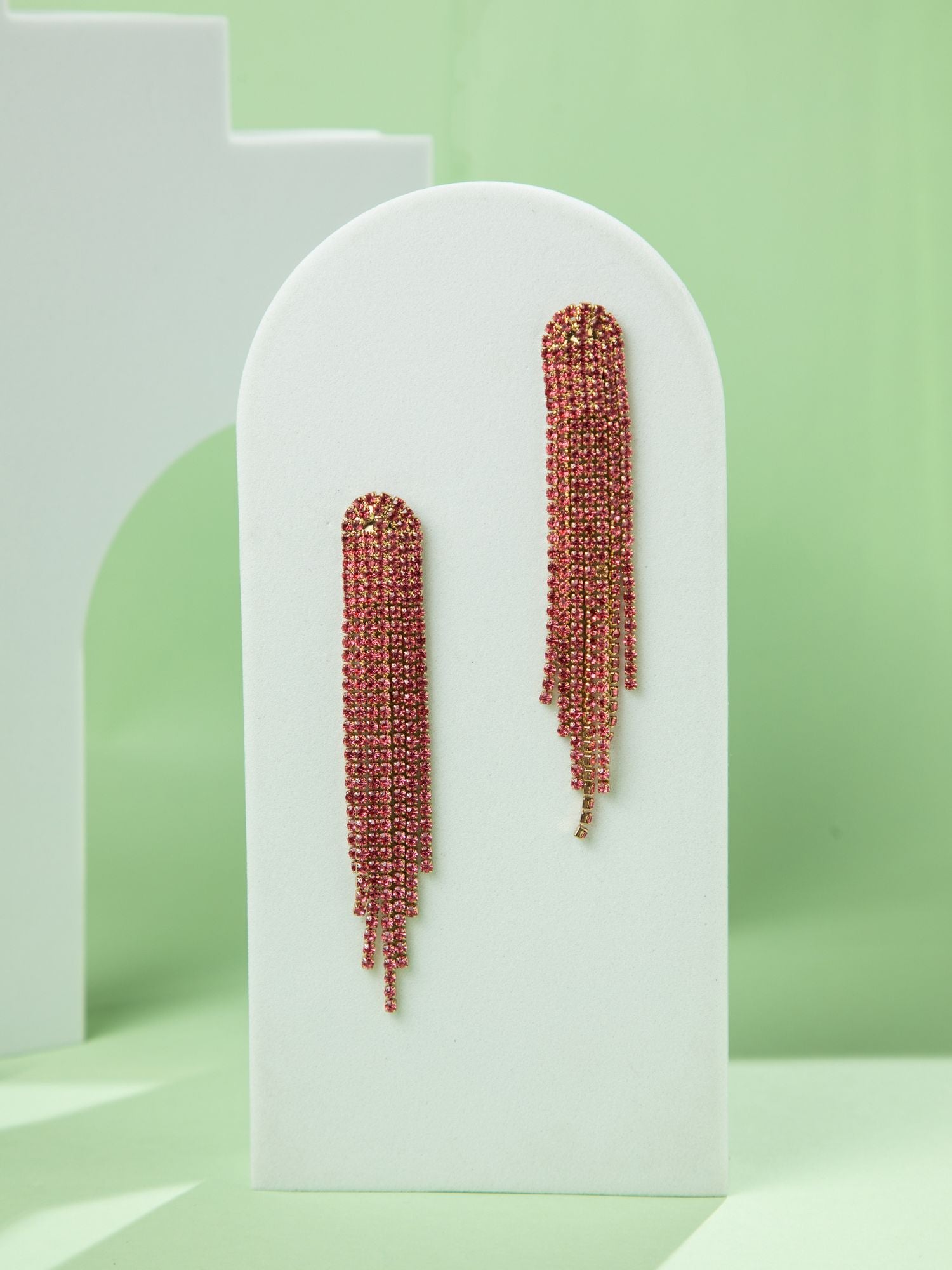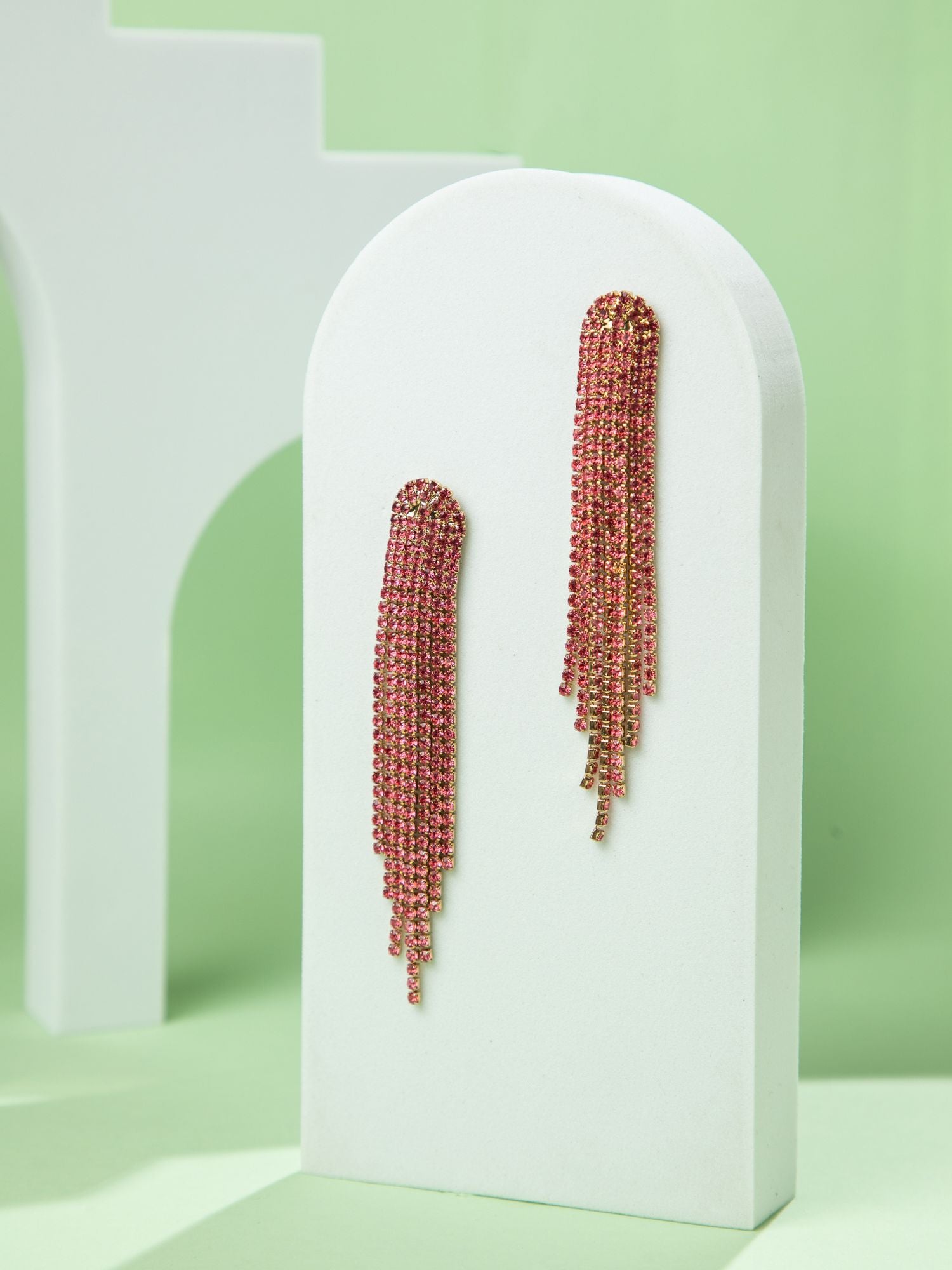 Pink Stone Multilayer Waterfall Dangler Earrings