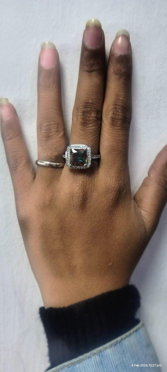 The Ring has a magnificent Radiant Cut center stone with brown color hues. It is surrounded by tiny round-cut Zirconia Stones. The body has a geometric pattern with Silver Plating. For every occasion to make you look spectacular and beautiful! The size is adjustable. Light in weight. Nickel Free Jewellery.