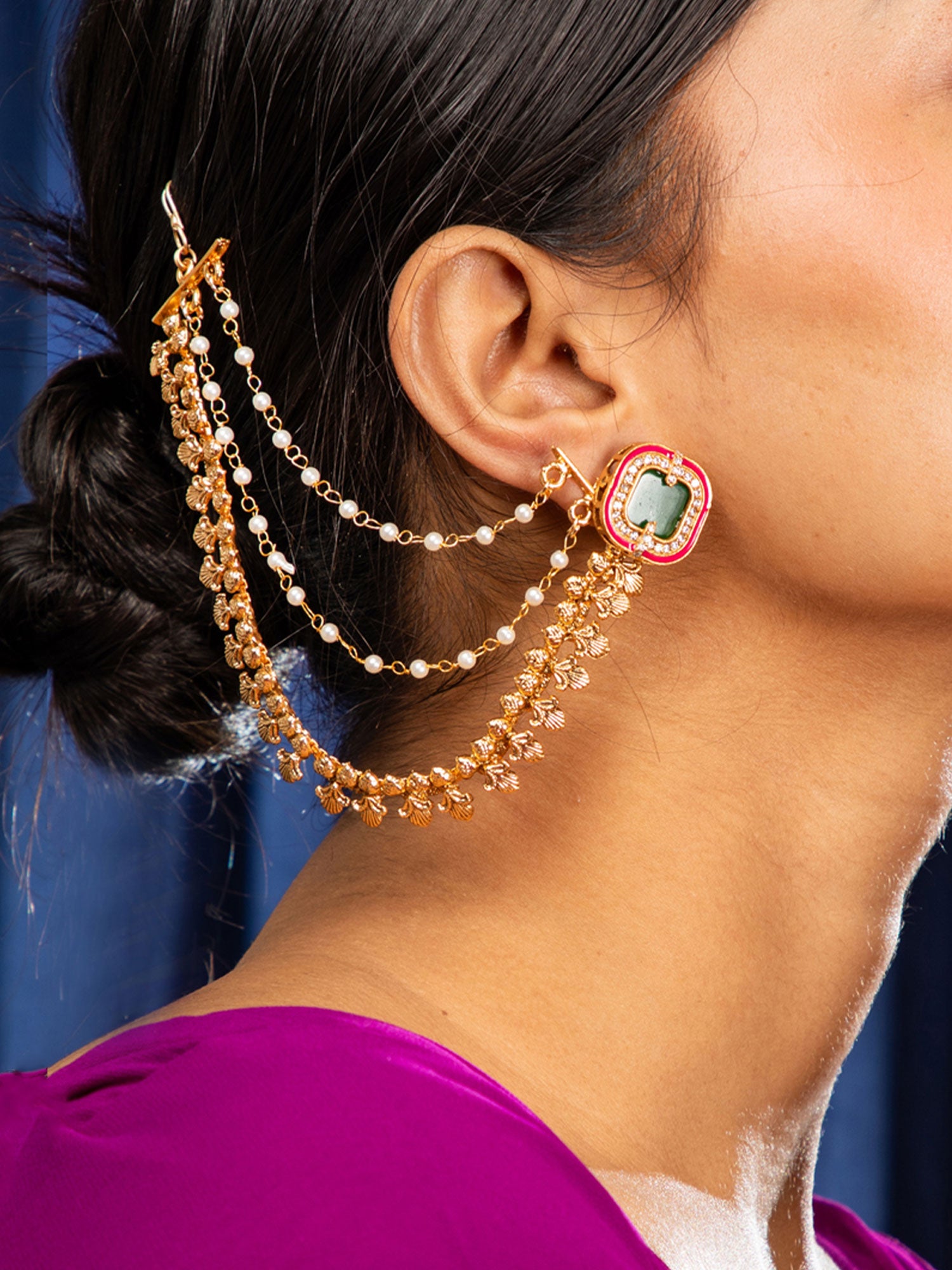Pair with a traditional bun hairstyle and ethnic attire to highlight the elegant ear chain design.