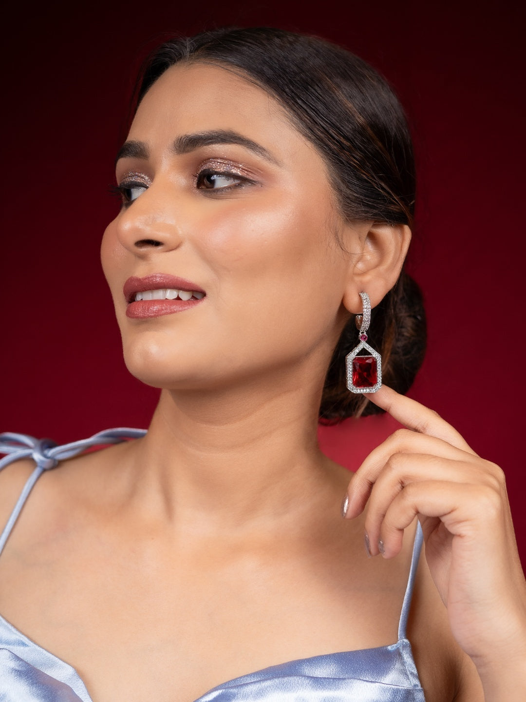 Pair these rhodium-plated earrings with a classic red or black gown for an elegant evening look, allowing the rubies and diamonds to shine. For a more contemporary style, wear them with a tailored white blouse and black trousers to add a pop of color and glamour to your office or day-to-night outfit.